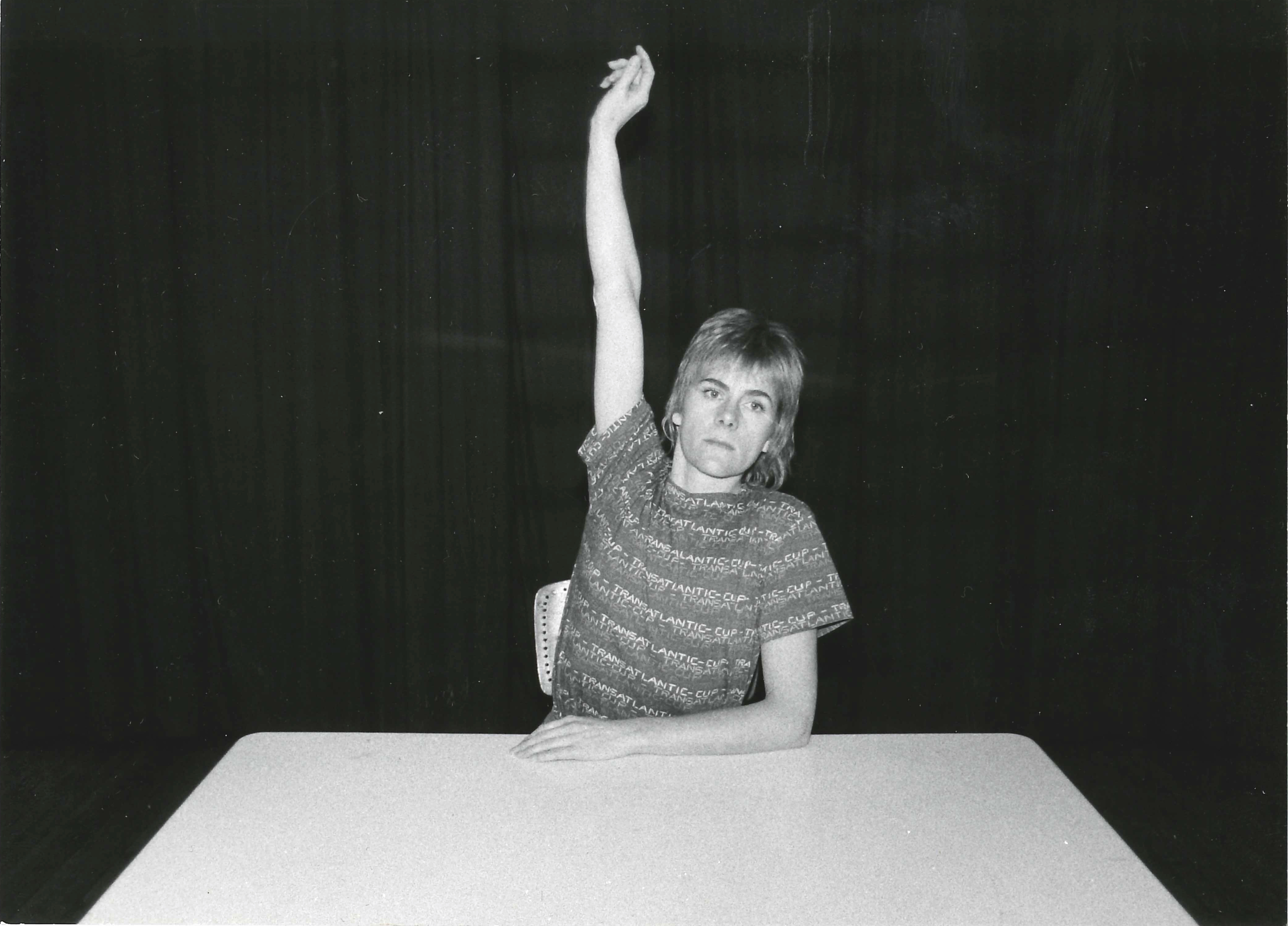 Fotografi fra Musidra Teaters produksjon Frosken Benjamin og Bomba (1985). Bildet er fra prøver i desember 1984.