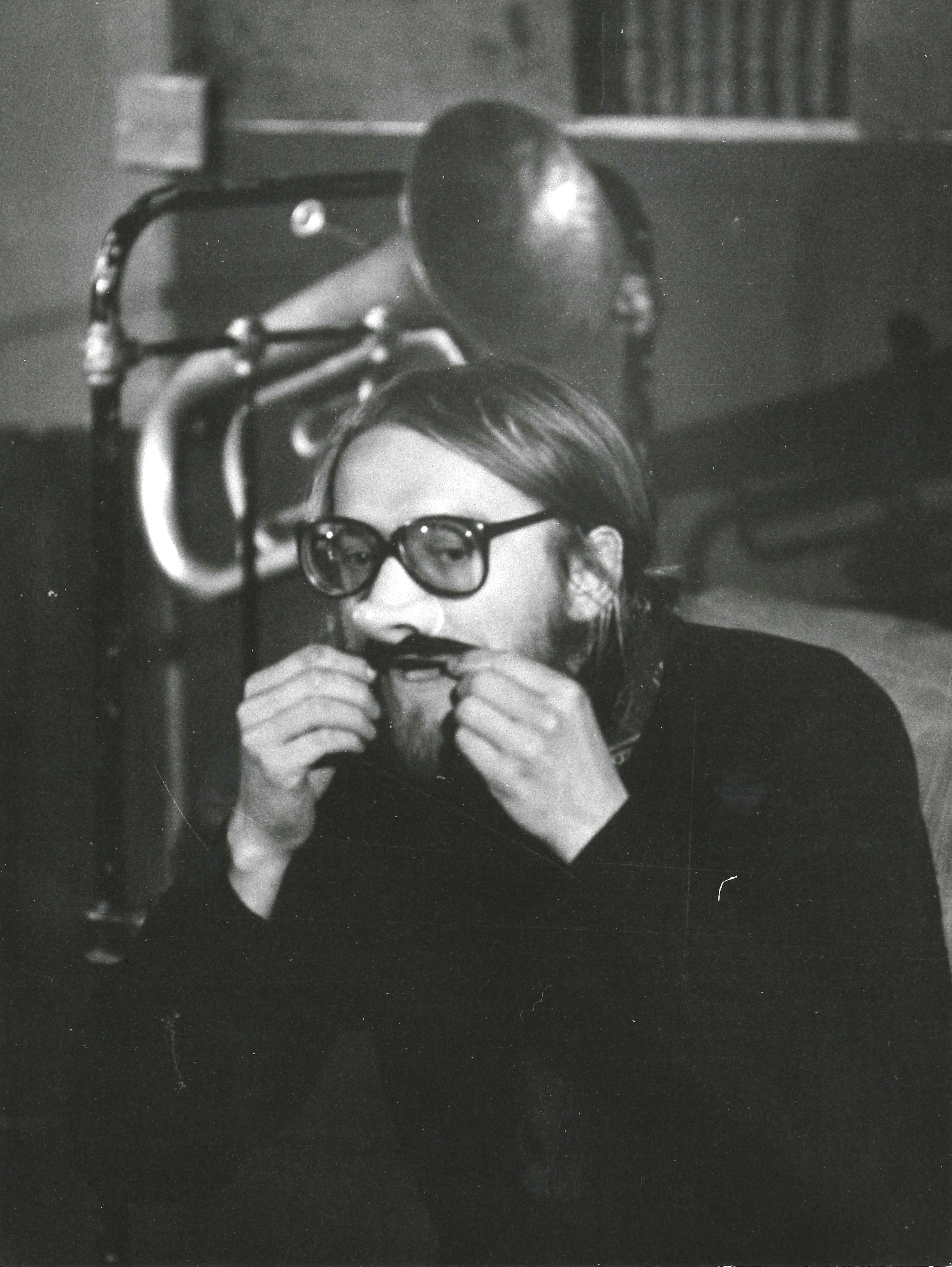 Fotografi fra Hønseføtter & Gulerøtter og Musidra Teaters produksjon Den allvitende kassa(1974).