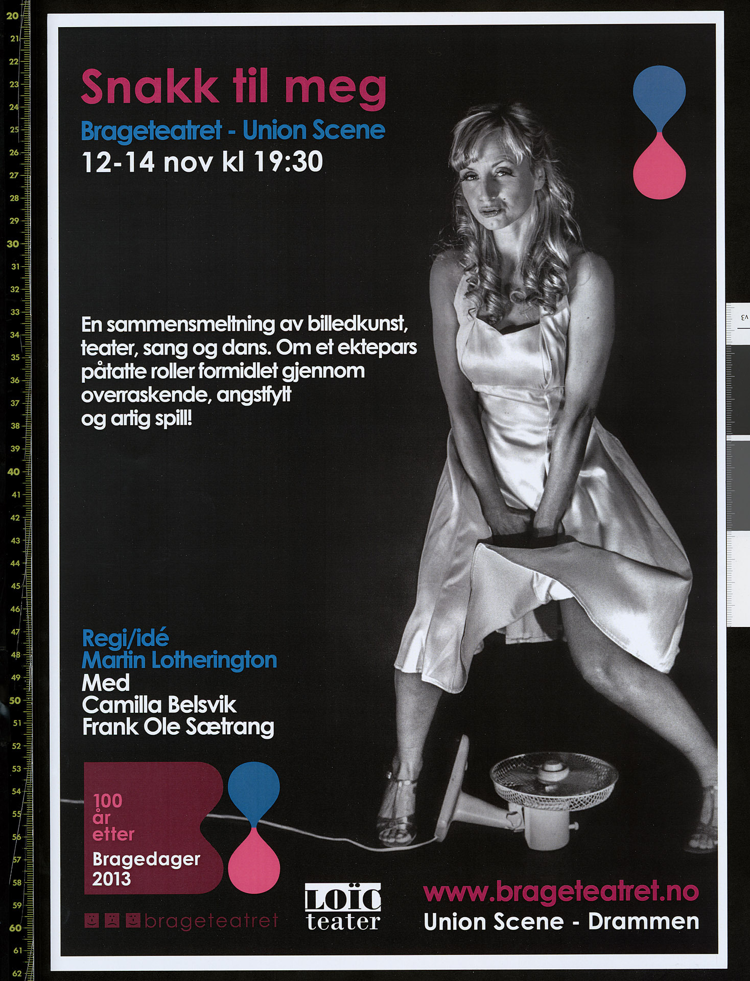 Plakat for Brageteatret og Loïc teaters produksjon Snakk til meg (2013).