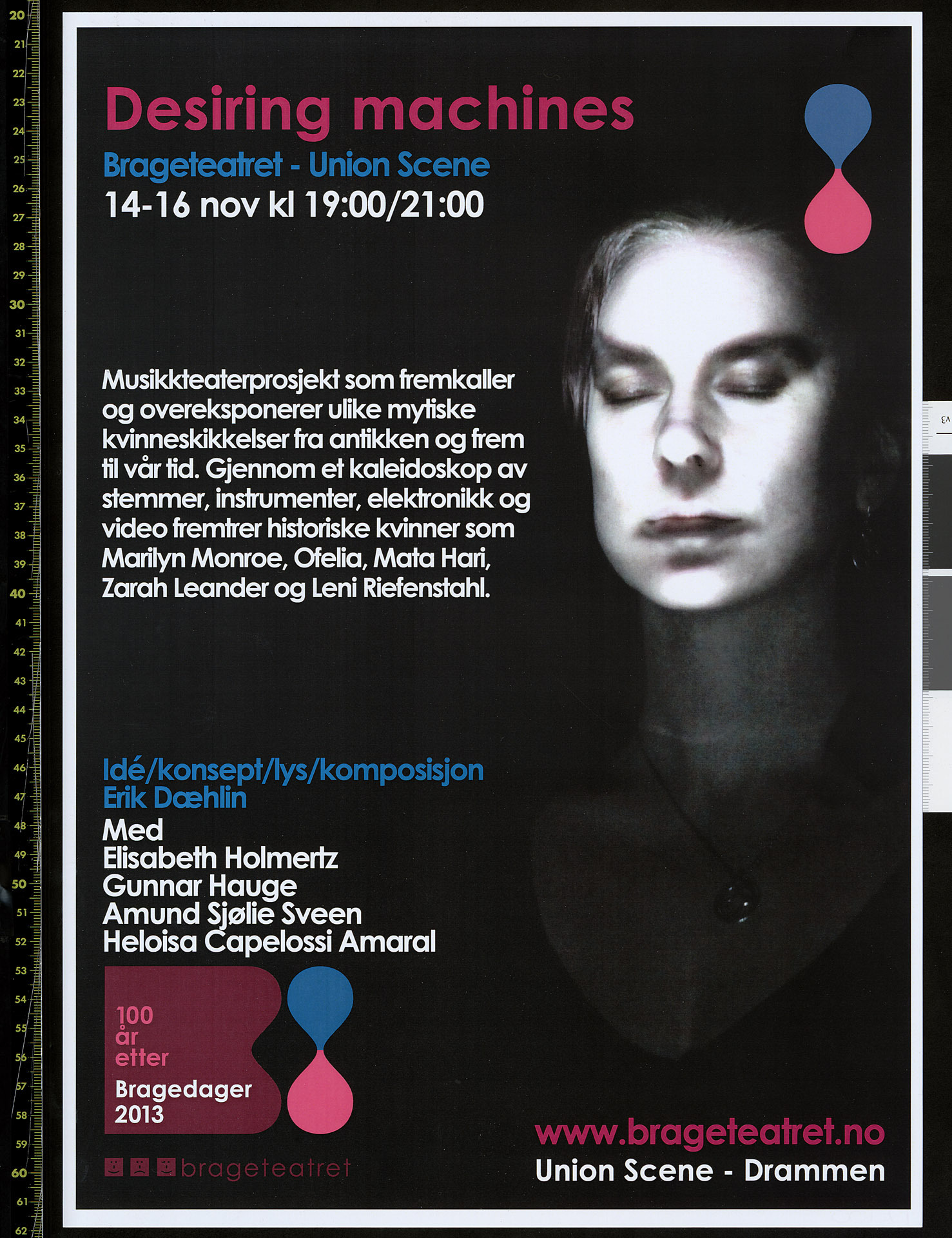 Plakat for Erik Dæhlins produksjon Desiring Machines (2013). Plakaten er fra forestillingen på Brageteatret.