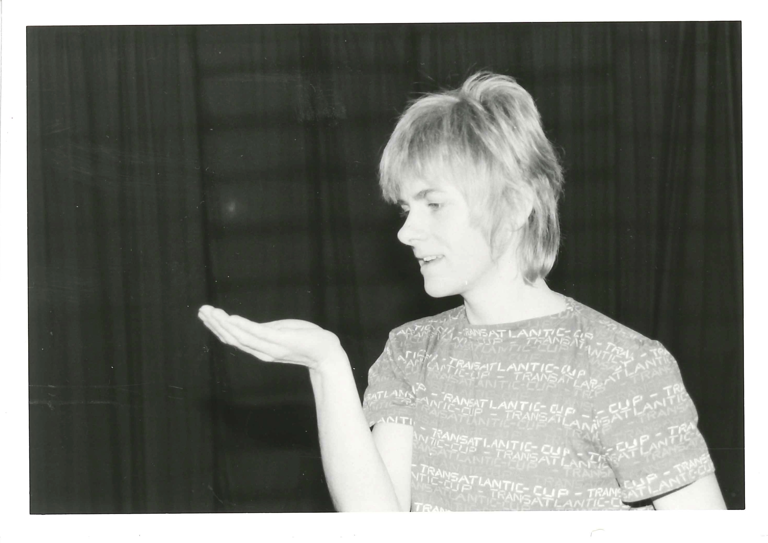 Fotografi fra Musidra Teaters produksjon Frosken Benjamin og Bomba (1985). Bildet er fra prøver i desember 1984.