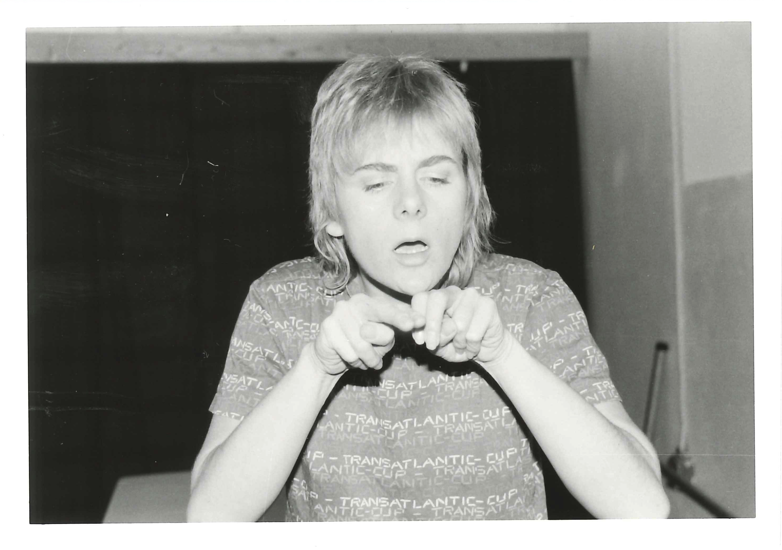 Fotografi fra Musidra Teaters produksjon Frosken Benjamin og Bomba (1985). Bildet er fra prøver i desember 1984.