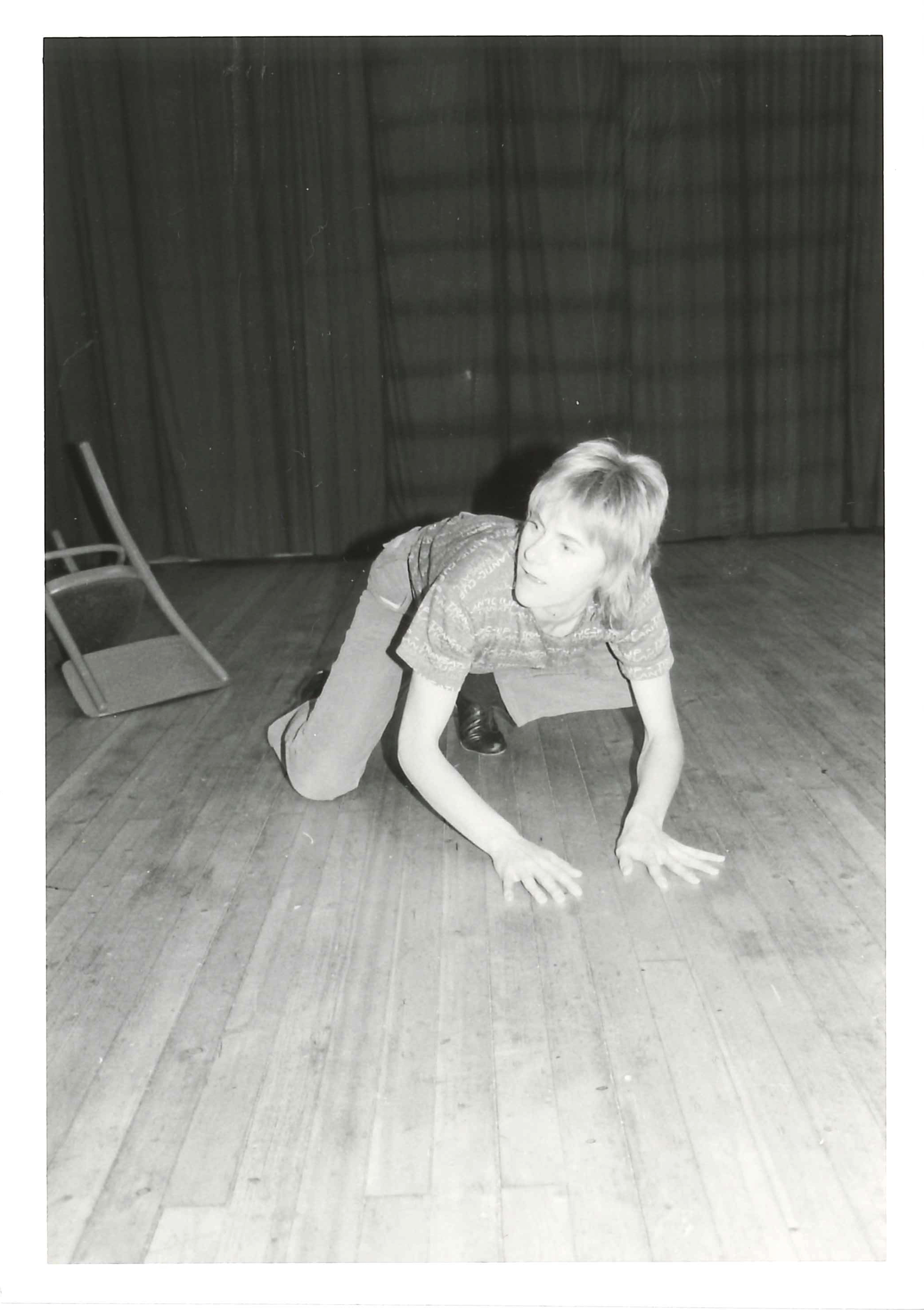 Fotografi fra Musidra Teaters produksjon Frosken Benjamin og Bomba (1985). Bildet er fra prøver i desember 1984.