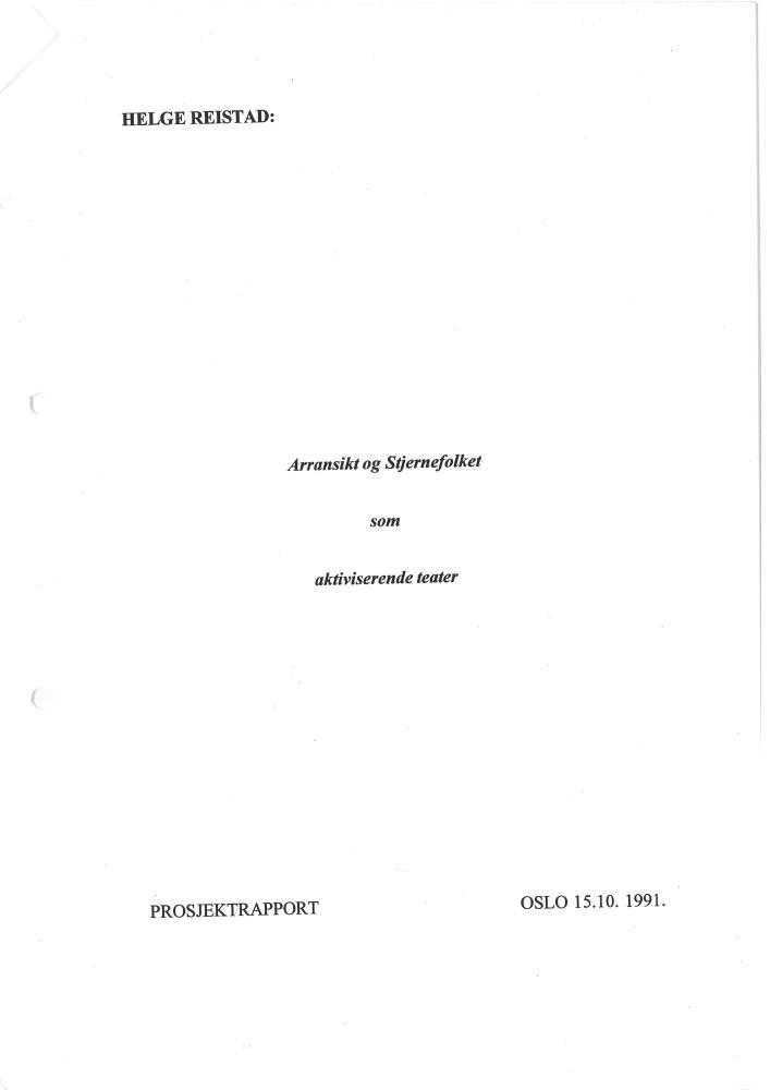 Prosjektrapport for Klomadu og Musidra Teaters produksjon Arransikt og stjernefolket (1987)