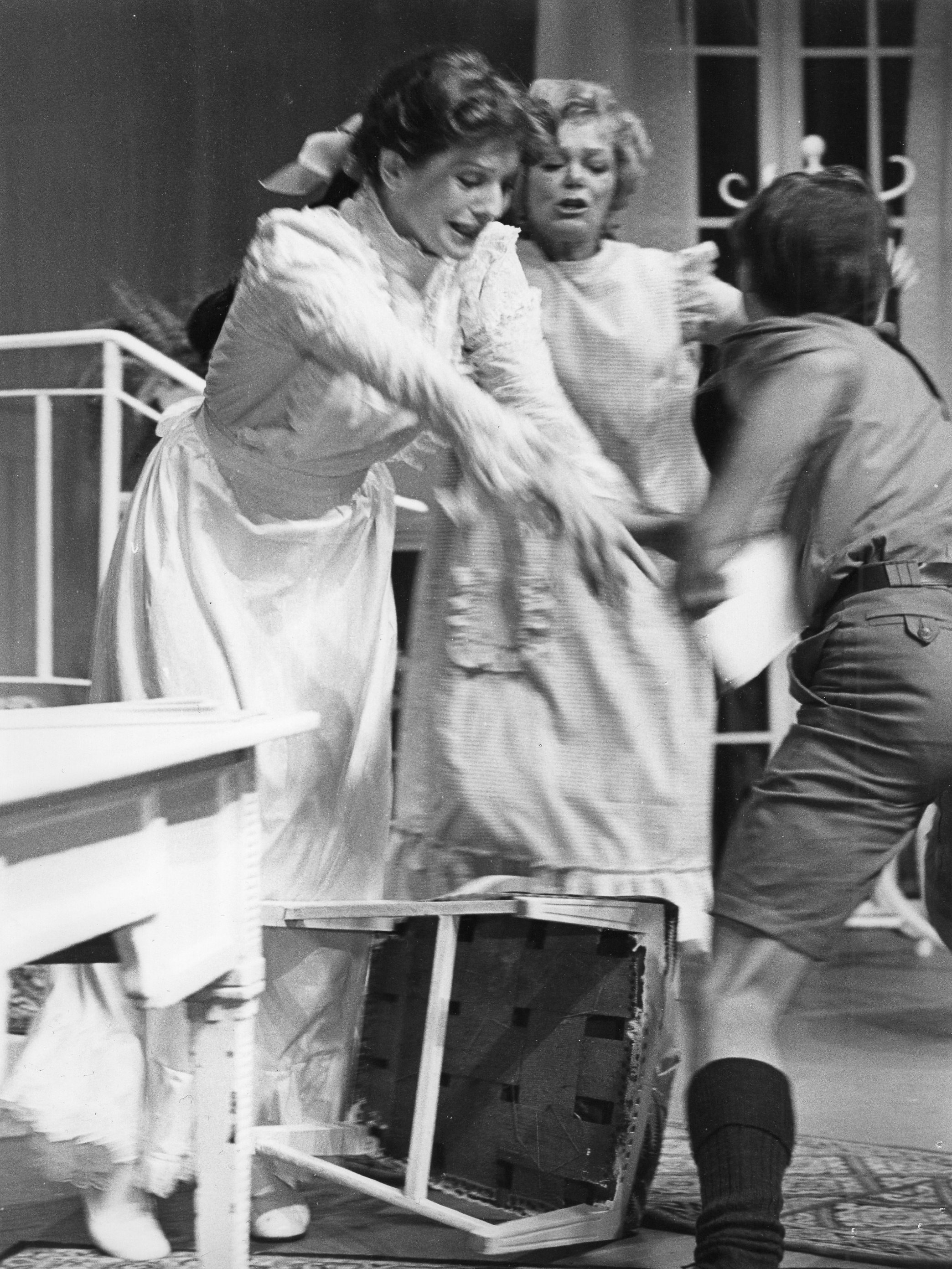 Fotografi fra Riksteatrets produksjon Det lykkelige valg (1976).