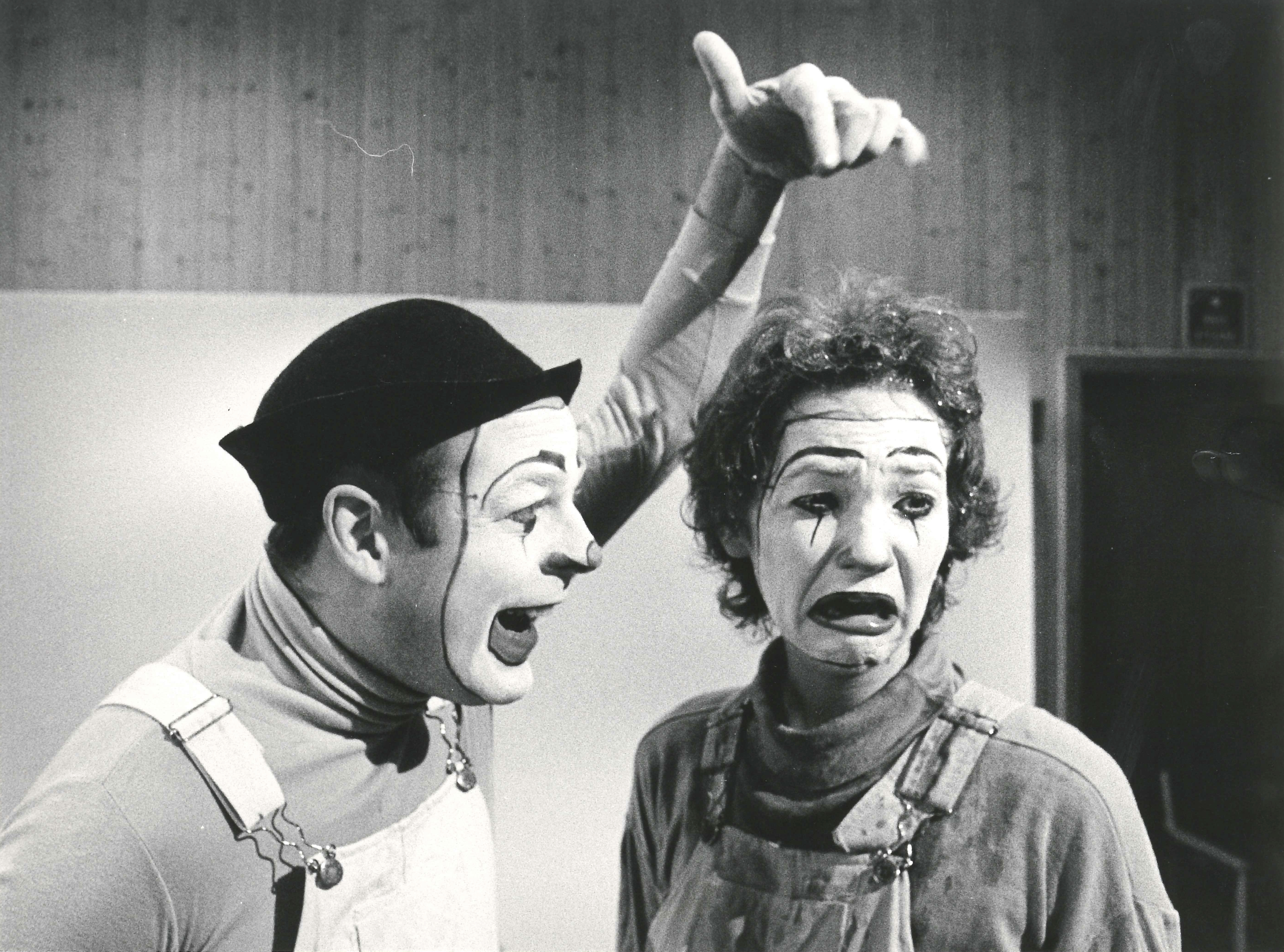 Fotografi fra Klomadu Teaters produksjon Mop og Jaggis klovnestreker (1984).