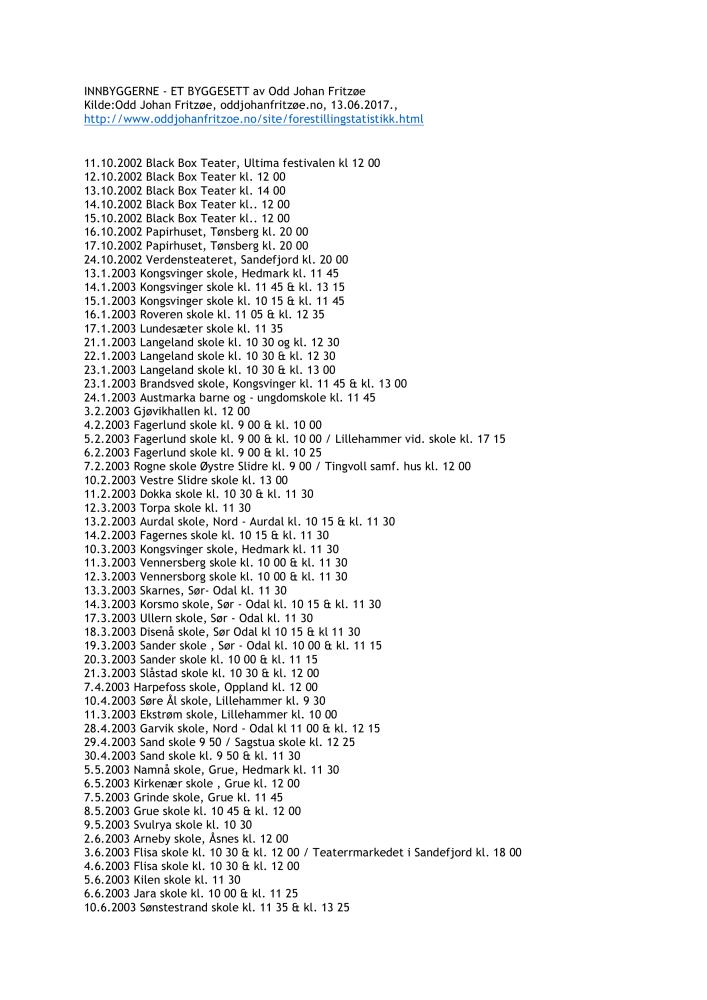 Odd Johan Fritzøe, oddjohanfritzøe.no, 13.06.2017., http://www.oddjohanfritzoe.no/site/forestillingstatistikk.html