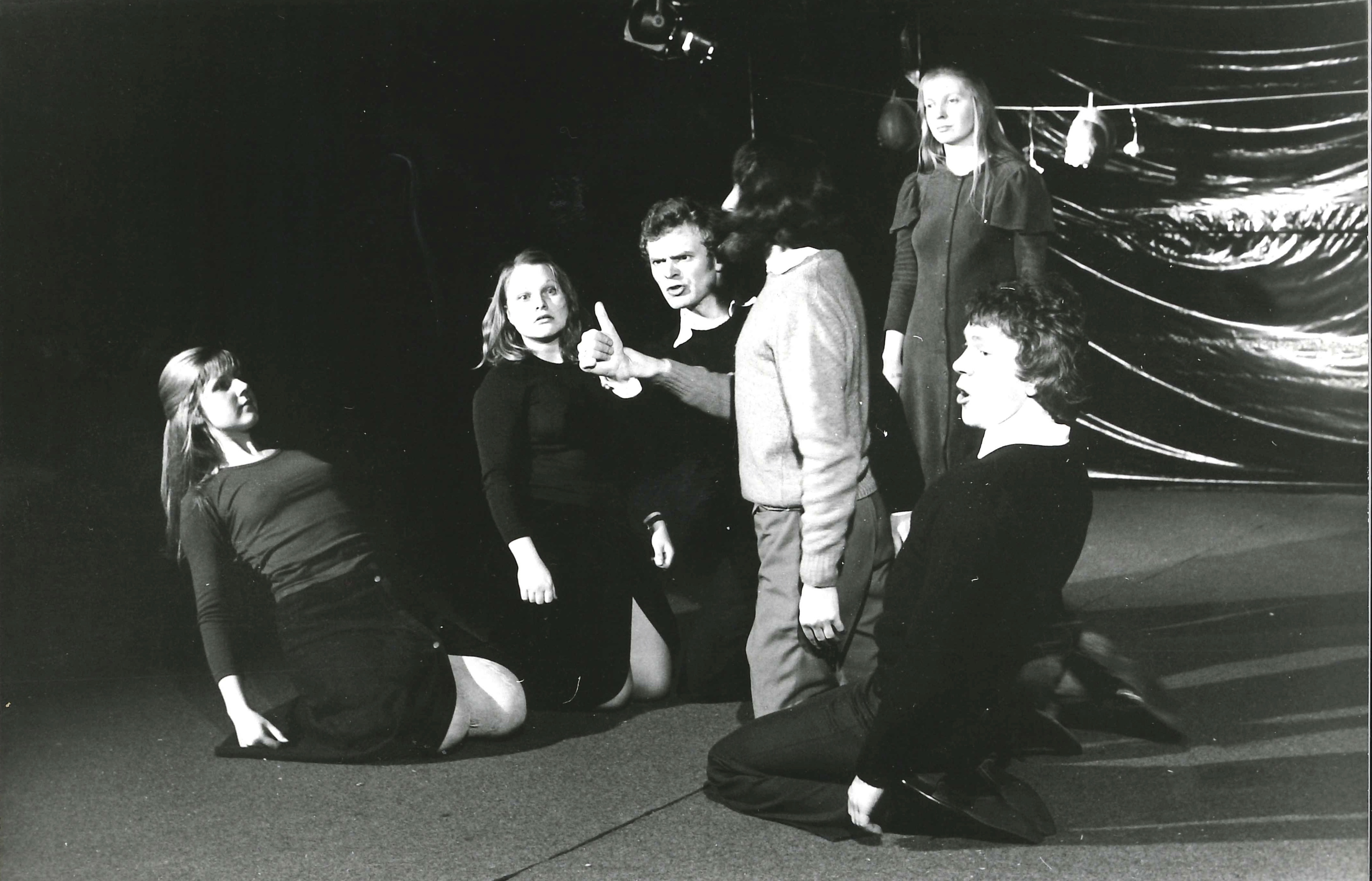 Fotografi fra Musidra Teaters produksjon I denne harde tid (1974).