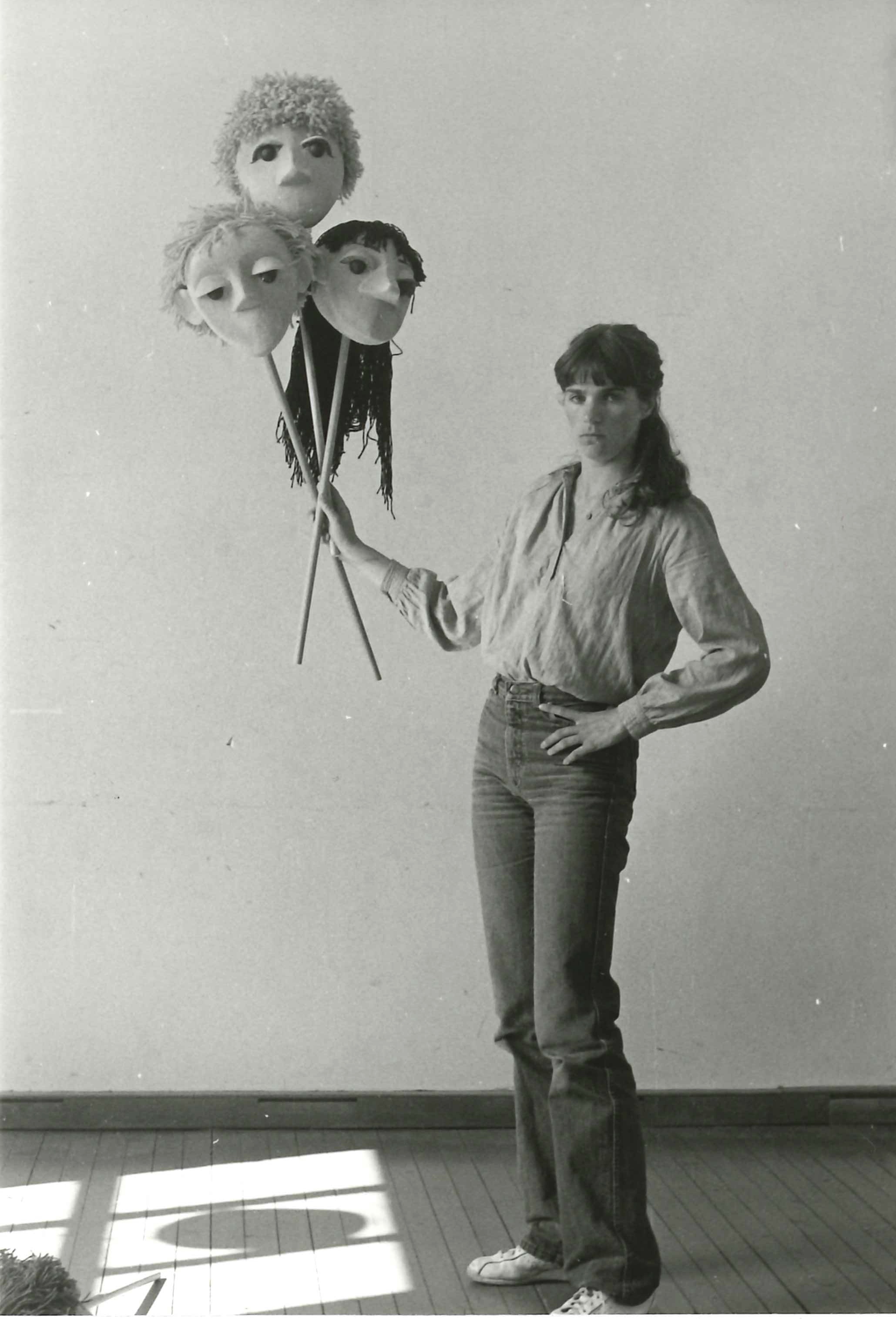 På bildet: Ann-Magritt Børresen med stangdukker av Tom Berre