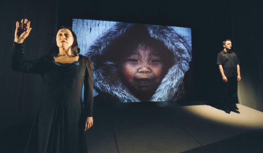 Fotografi fra Hålogaland Teaters produksjon Eskimohistorier - Inuittenes historie sett med skjeve øyne (2002)