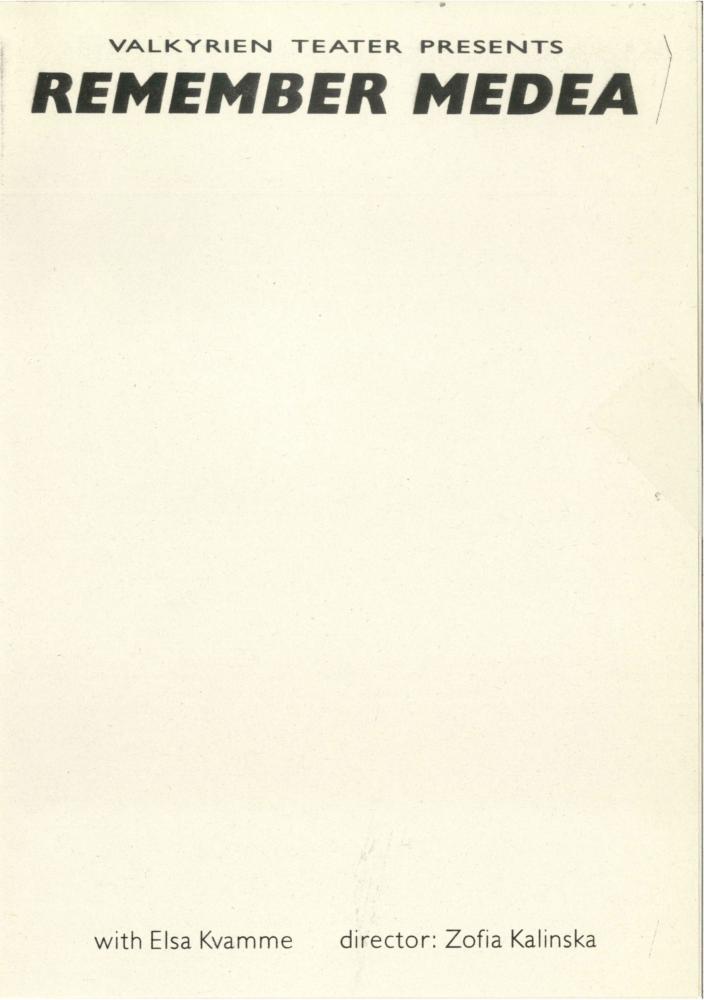 Program fra Elsa Kvammes produksjon Medea (1990). Programmet er på engelsk.