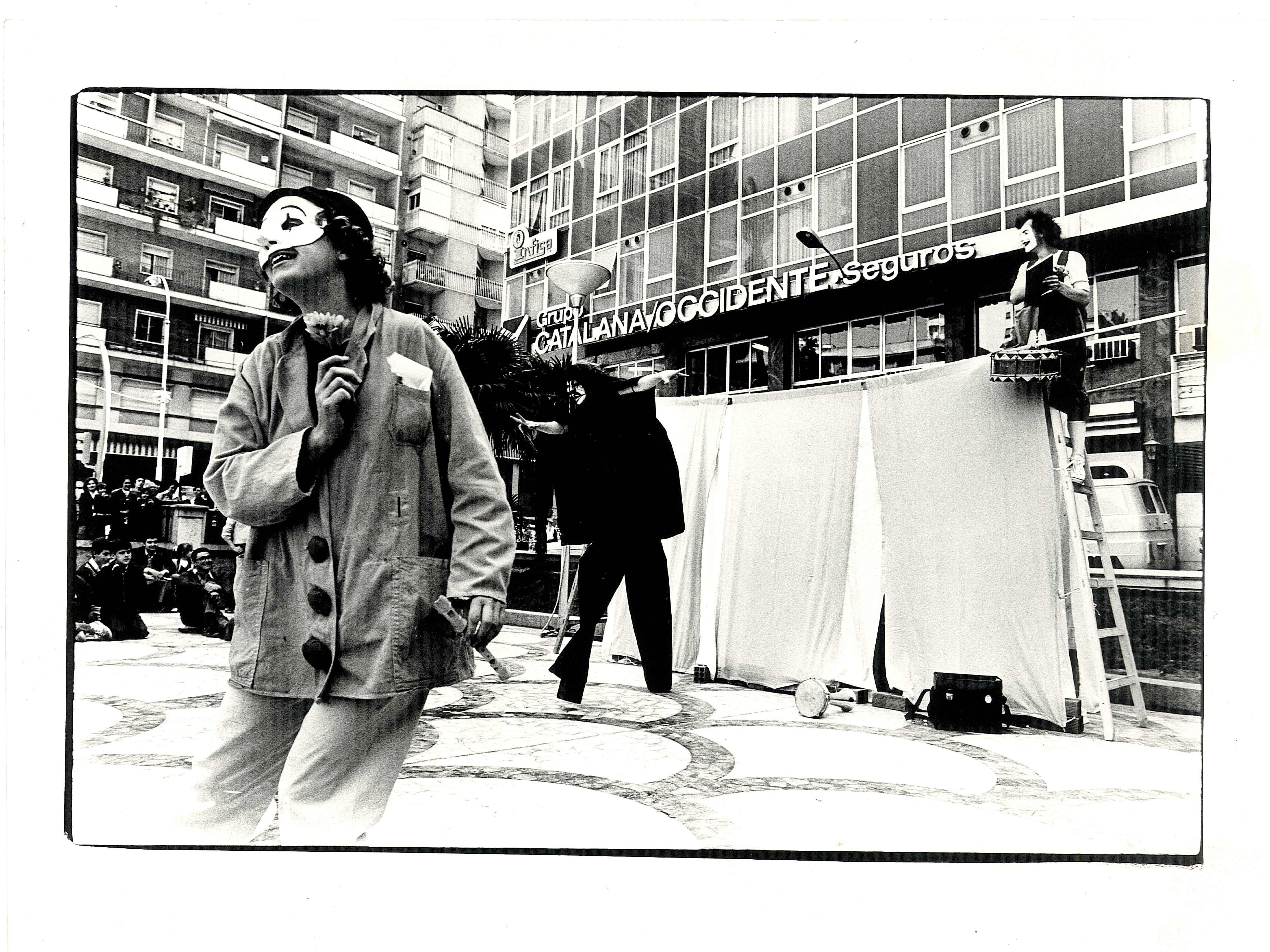 Fotografi fra Saltkompagniets produksjon Uhyret danser (1979). Fotografiet er fra turné i Murcia i Spania 1980.