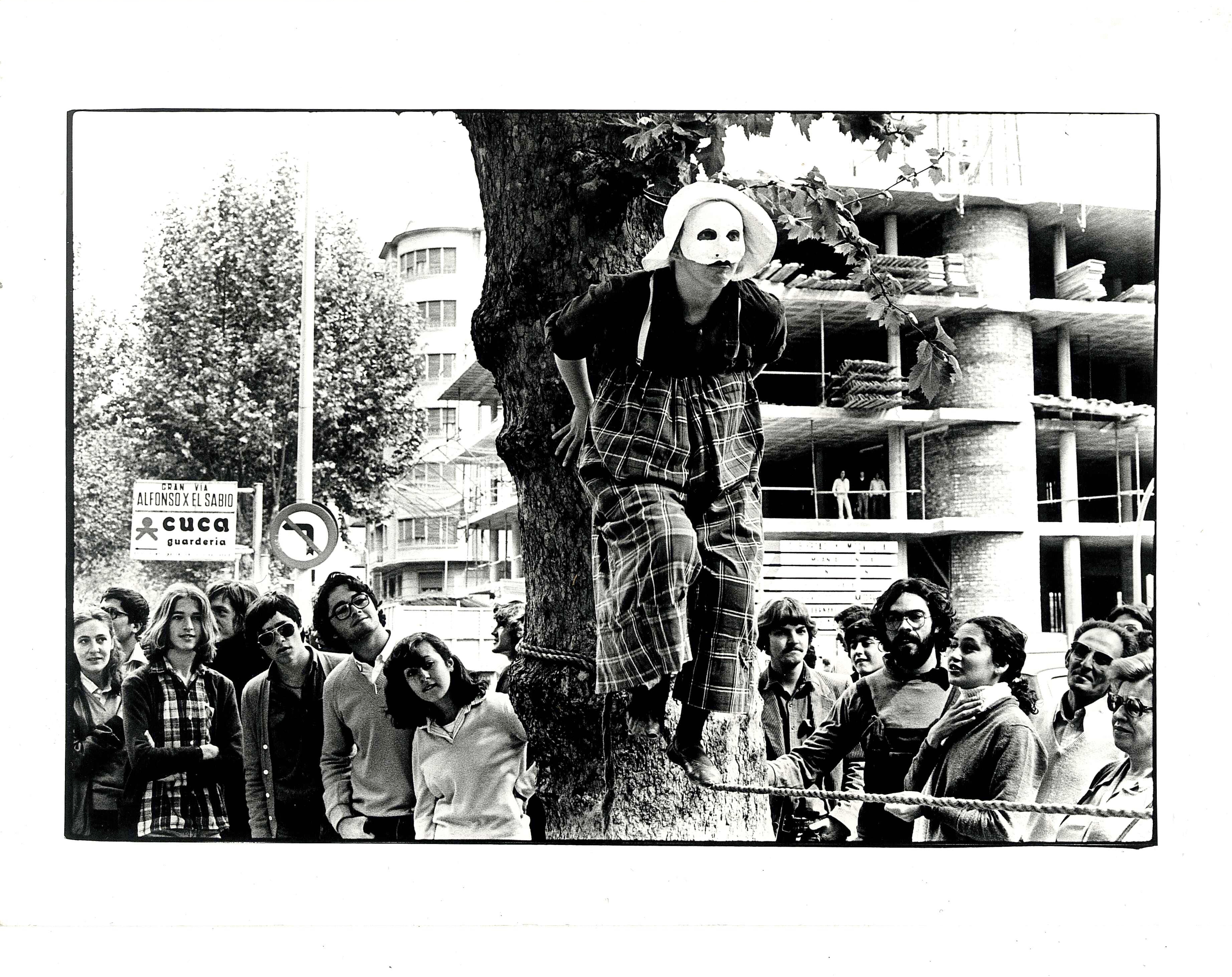 Fotografi fra Saltkompagniets produksjon Uhyret danser (1979). Fotografiet er fra turné i Murcia i Spania 1980.