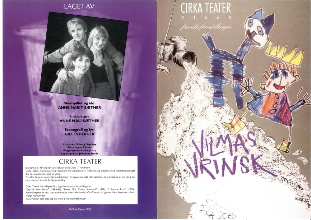Forestillingsprogram for Cirka Teaters produksjon Vilma Vrinsk (1993).