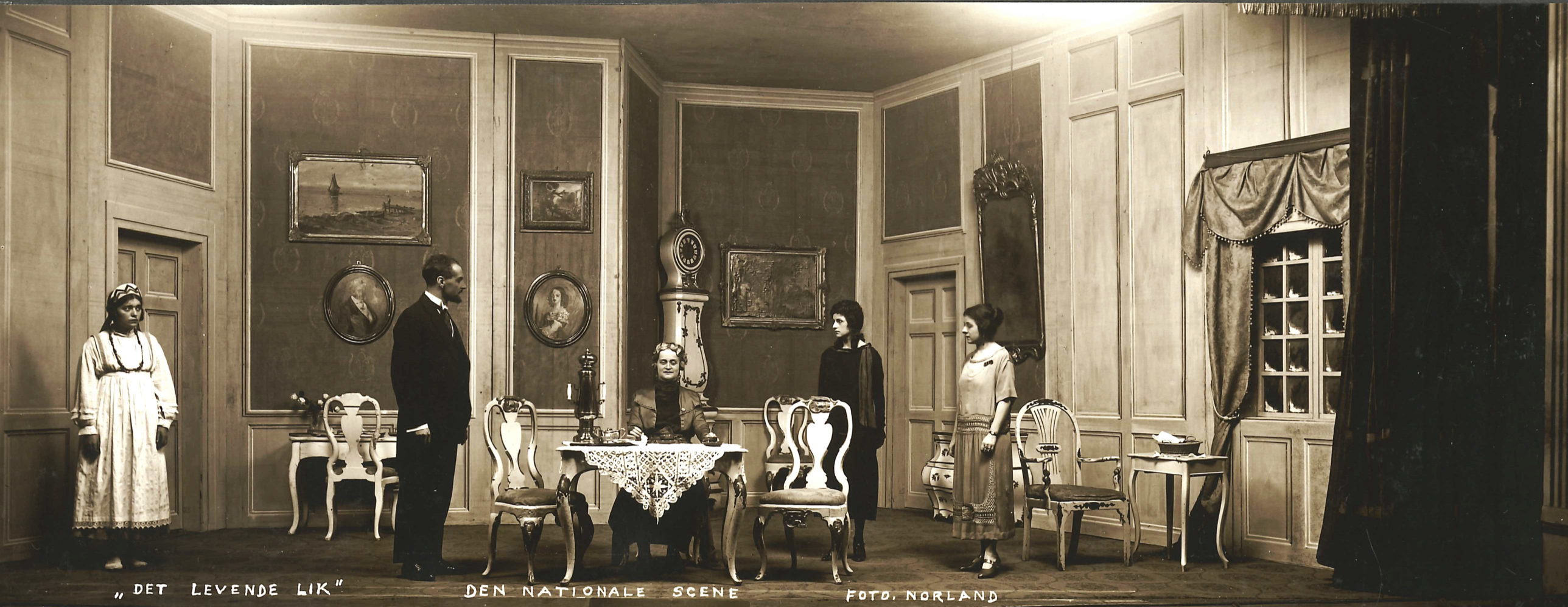 Fotografi fra Den Nationale Scenes produksjon Det levende lik (1925).