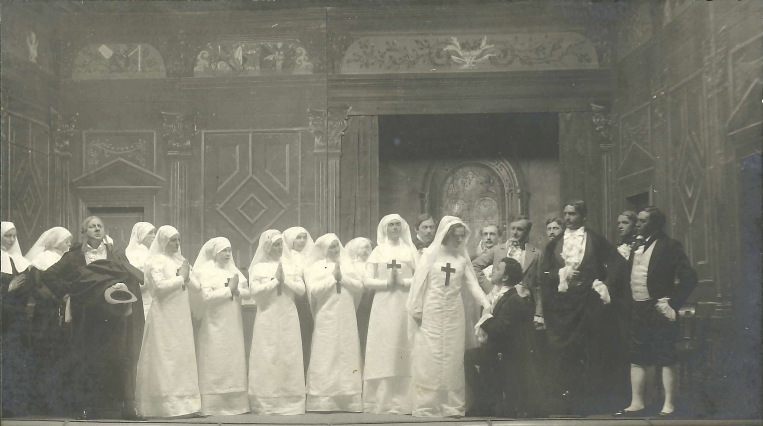 Fotografi fra Den Nationale Scenes produksjon Den sorte Domino (1913).