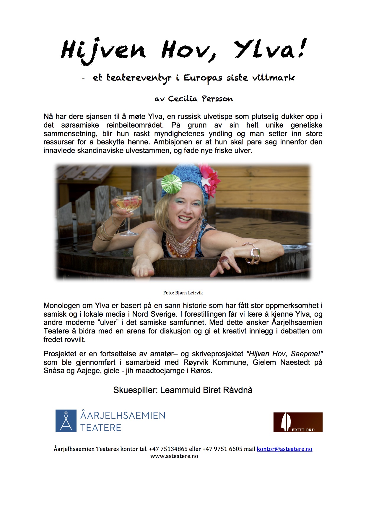 Plakat for Åarjelhsaemien Teateres produksjon Hijven Hov, Ylva (2014).