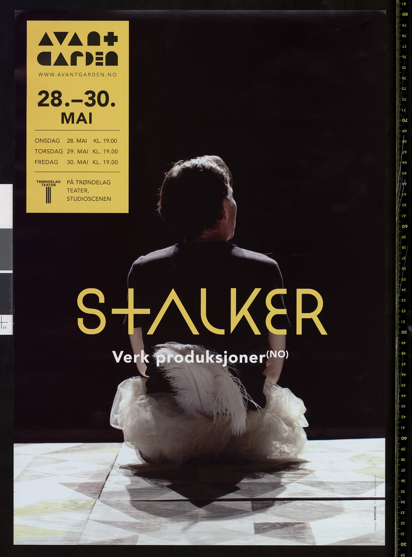 Plakat for Verk Produksjoners produksjon Stalker (2013). Plakaten er fra forestillingene på Teaterhuset Avant Garden i mai 2014.