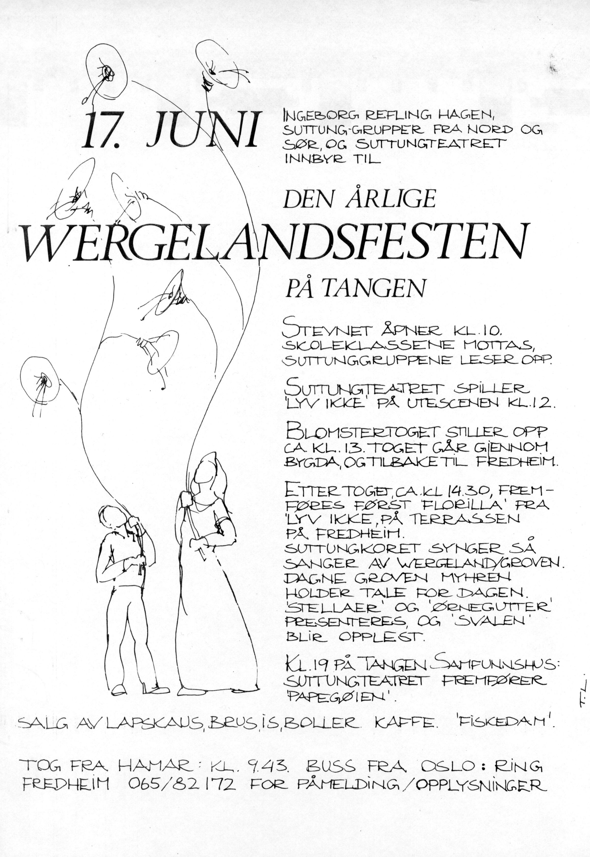 Plakat for Suttungteatrets Werglandsfesten 1980-tallet(usikkert hvilket årstallet)