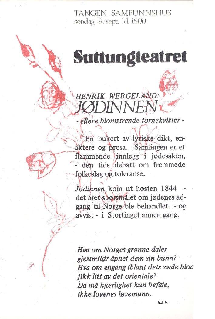 Plakat for Suttungteatrets produksjon Jødinden (1984)