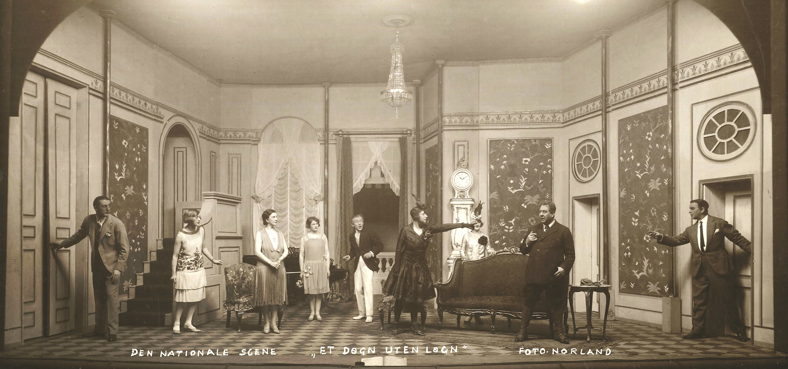 Fotografi fra Den Nationale Scenes produksjon Et døgn uten løgn (1927).
