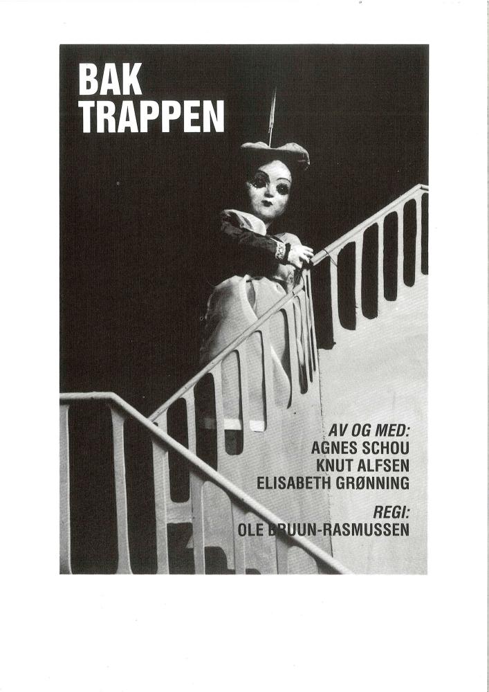 Program for Levende Dukkers produksjon Bak Trappen (1986).