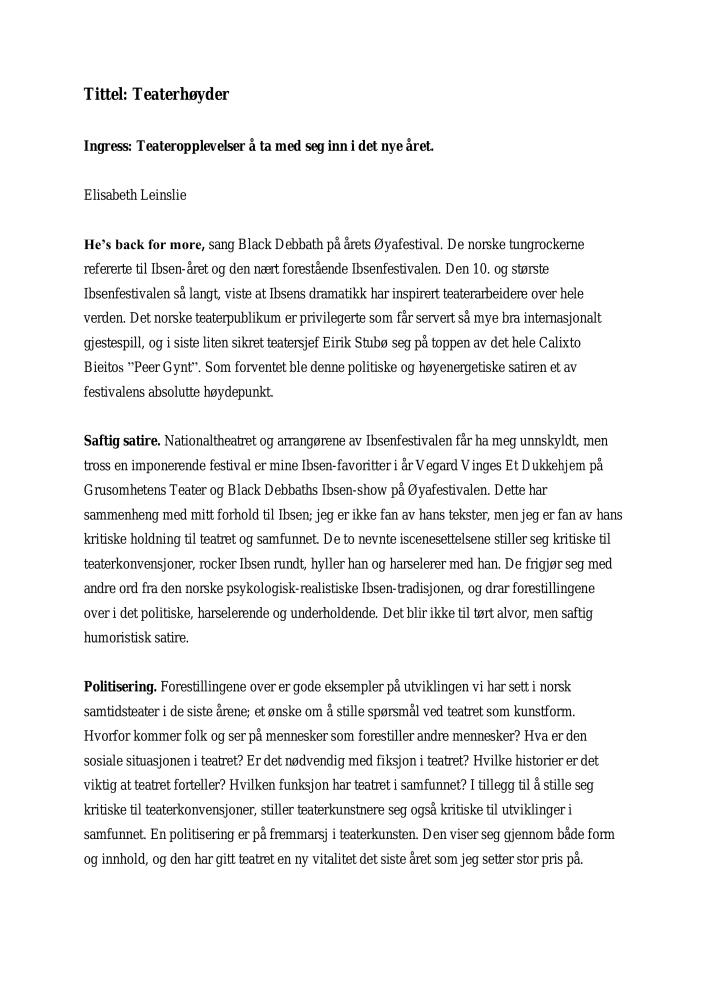 Kommentar av Elisabeth Leinslie i Dagsavisen om teateråret 2006