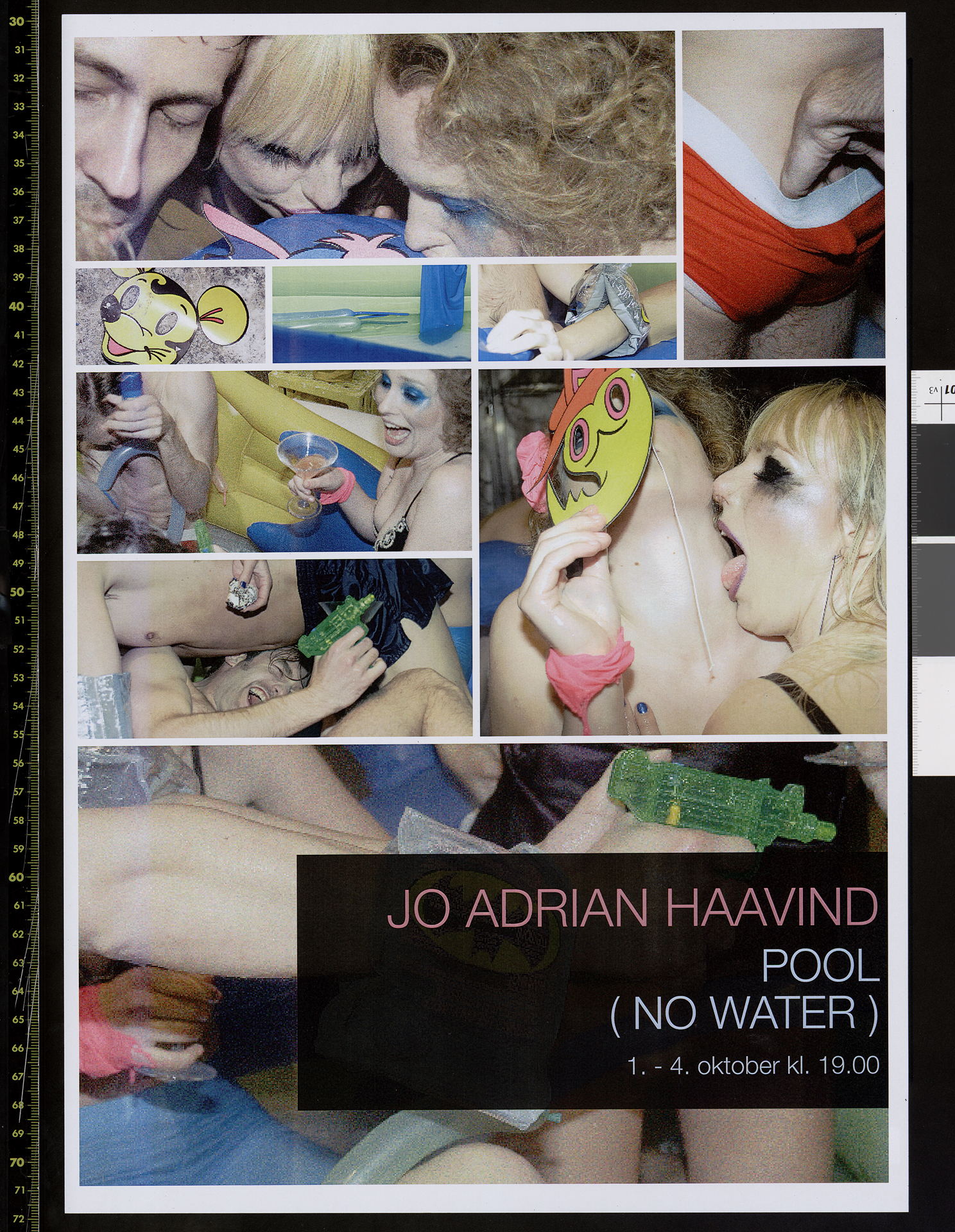 Plakat for Jo Adrian Haavinds produksjon Pool (no water) (2009). Plakaten er fra forestillngene på Black Box Teater i Oslo i oktober 2009.