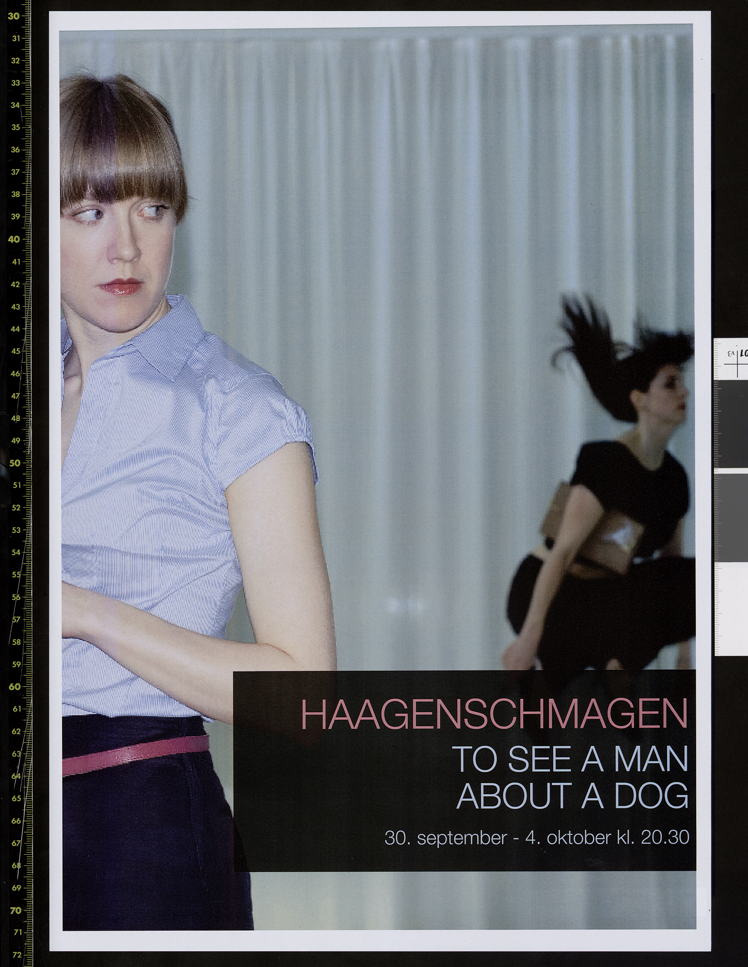 Plakat for Haagenschmagens produksjon To see a man about a dog (2009).