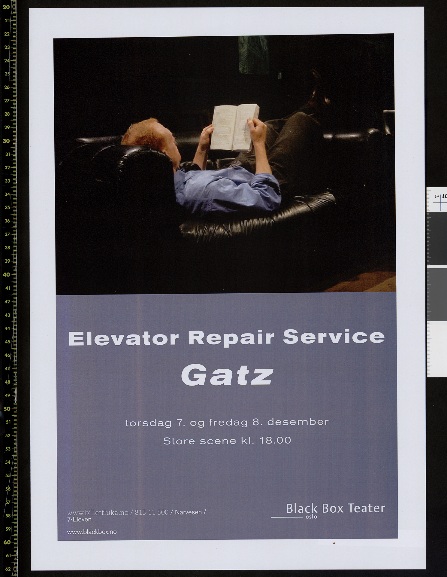 Plakat for Elevator Repair Services produksjon Gatz. Plakaten er fra forestillingene på Black Box Teater i desember 2006.