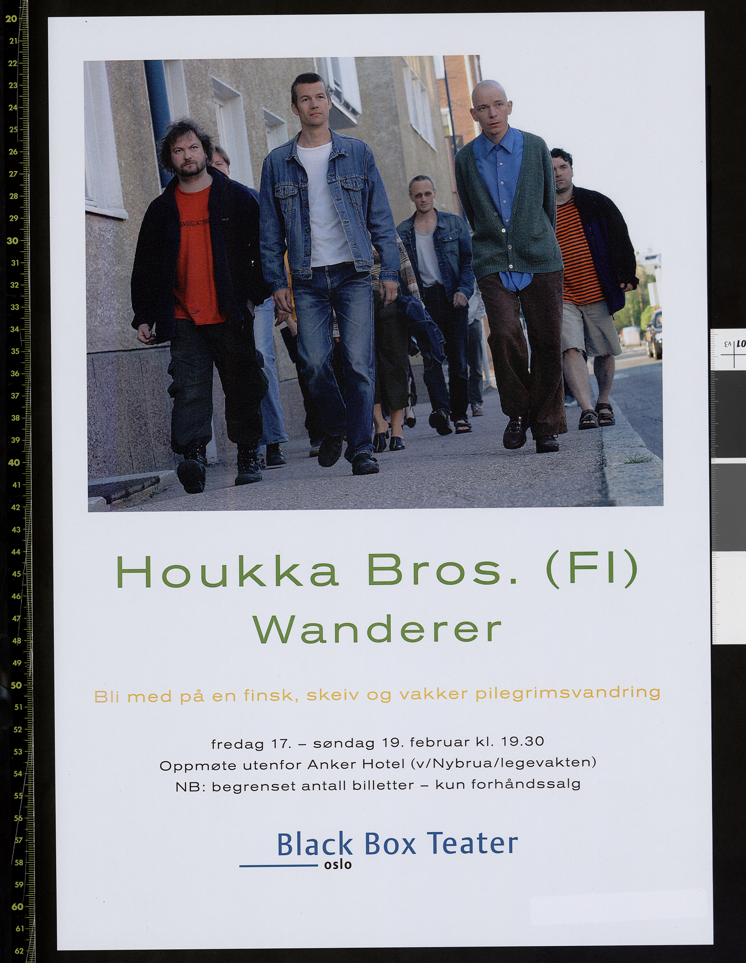 Plakat for Houkka Bros. produksjon The Wanderer. Plakaten er fra forestillingene på Black Box Teater i februar 2006.