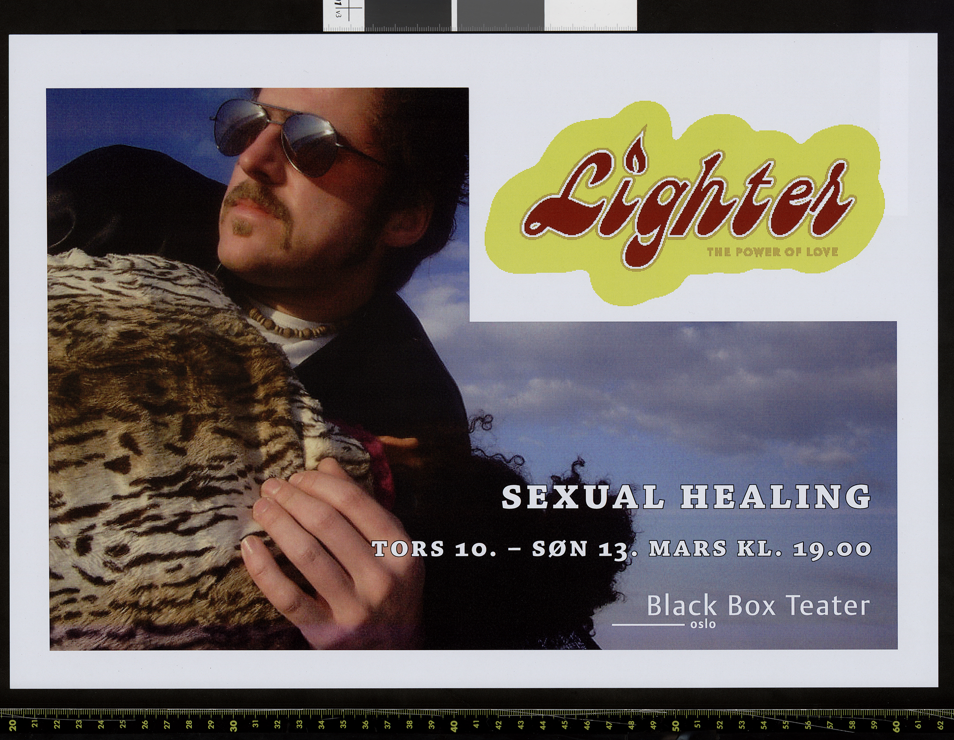 Plakat for Morten Traavik og Kjetil Møsters produksjon Sexual Healing (2005). Plakaten er fra forestillingene på Black Box Teater i mars 2005.