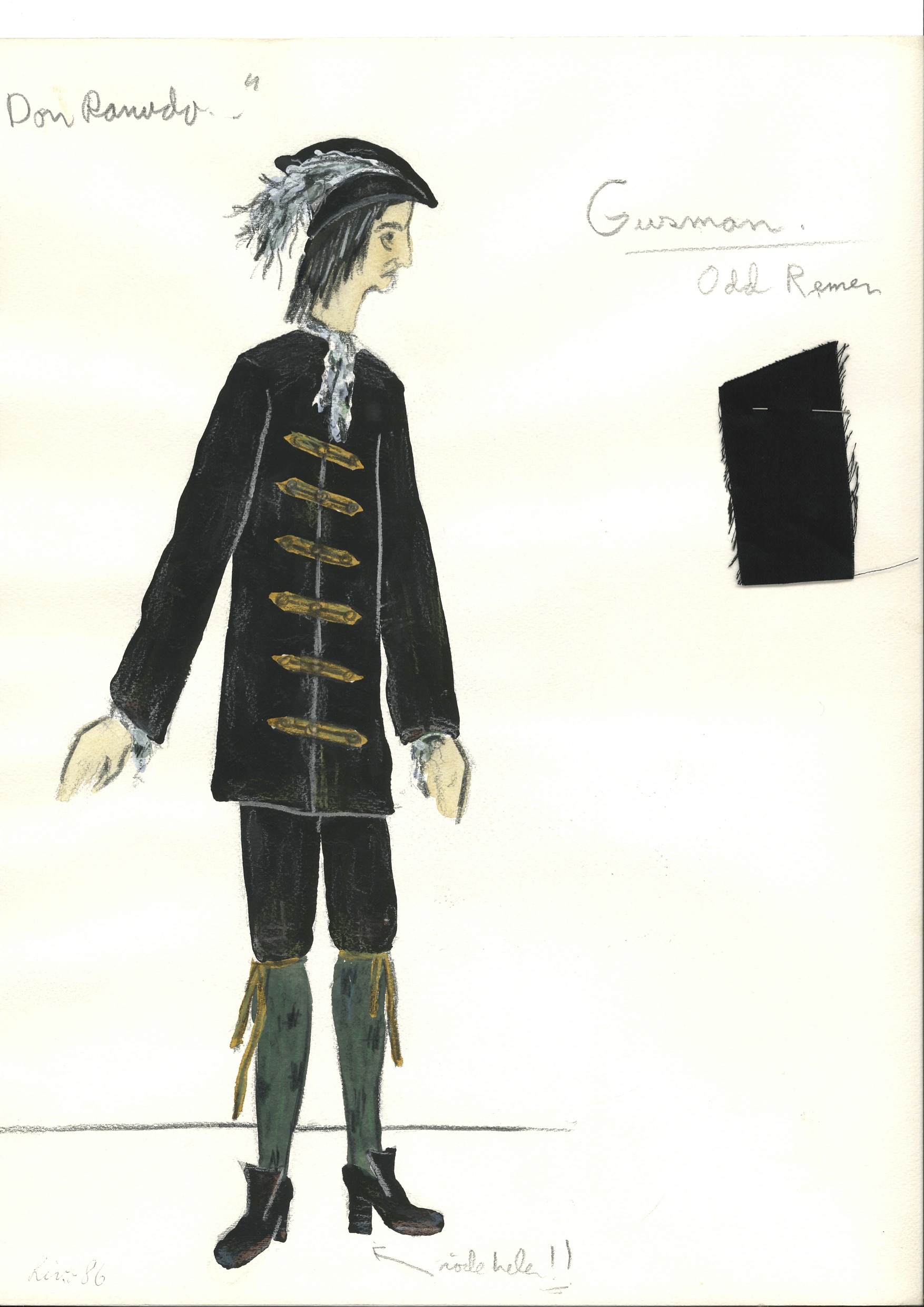 Kostymetegning fra Riksteatrets produksjon Don Ranudo og Donna Olympia (1981).