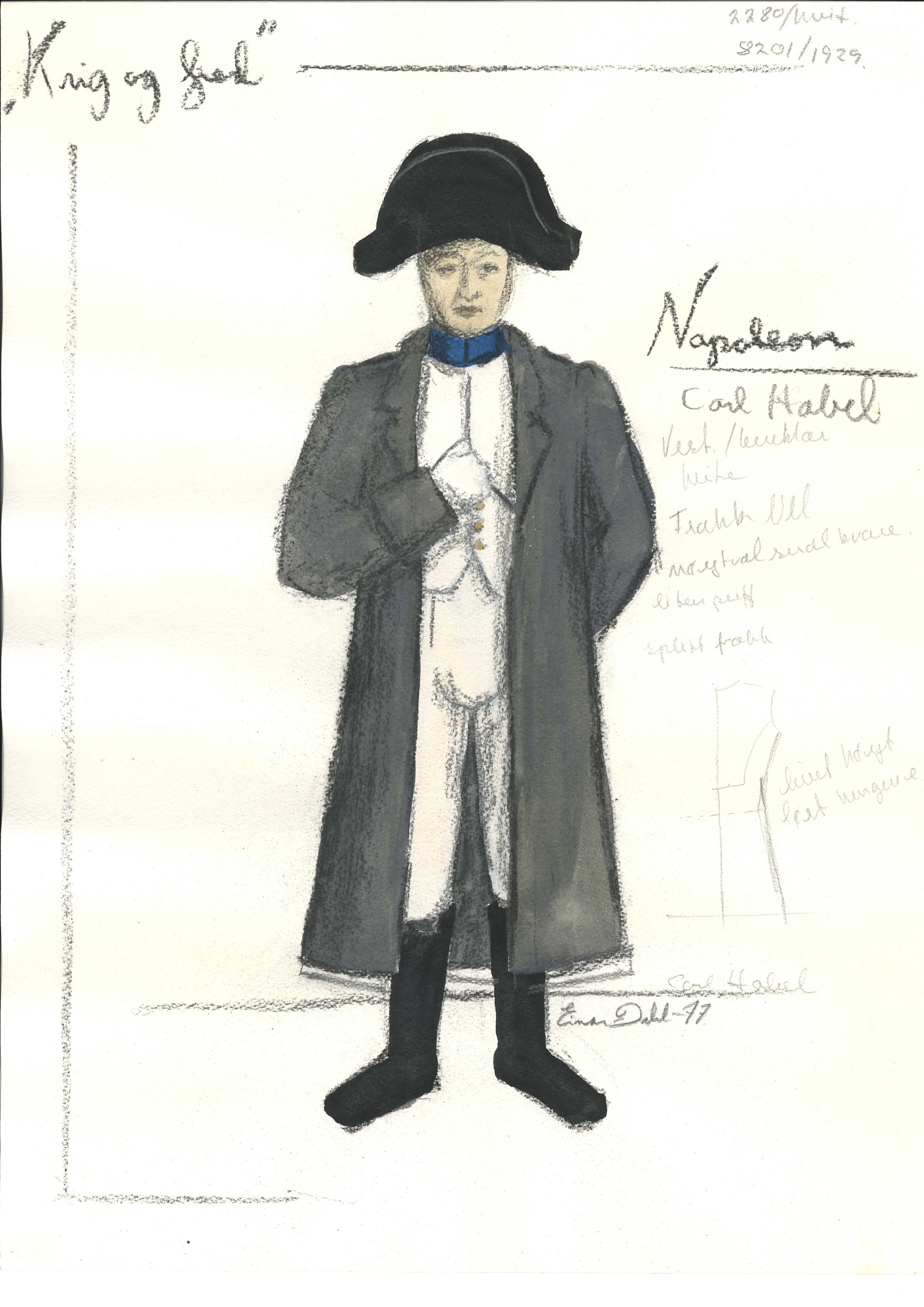 Tegningen er til skuespilleren Carl Habel i rollen som Napoleon Bonaparte.
