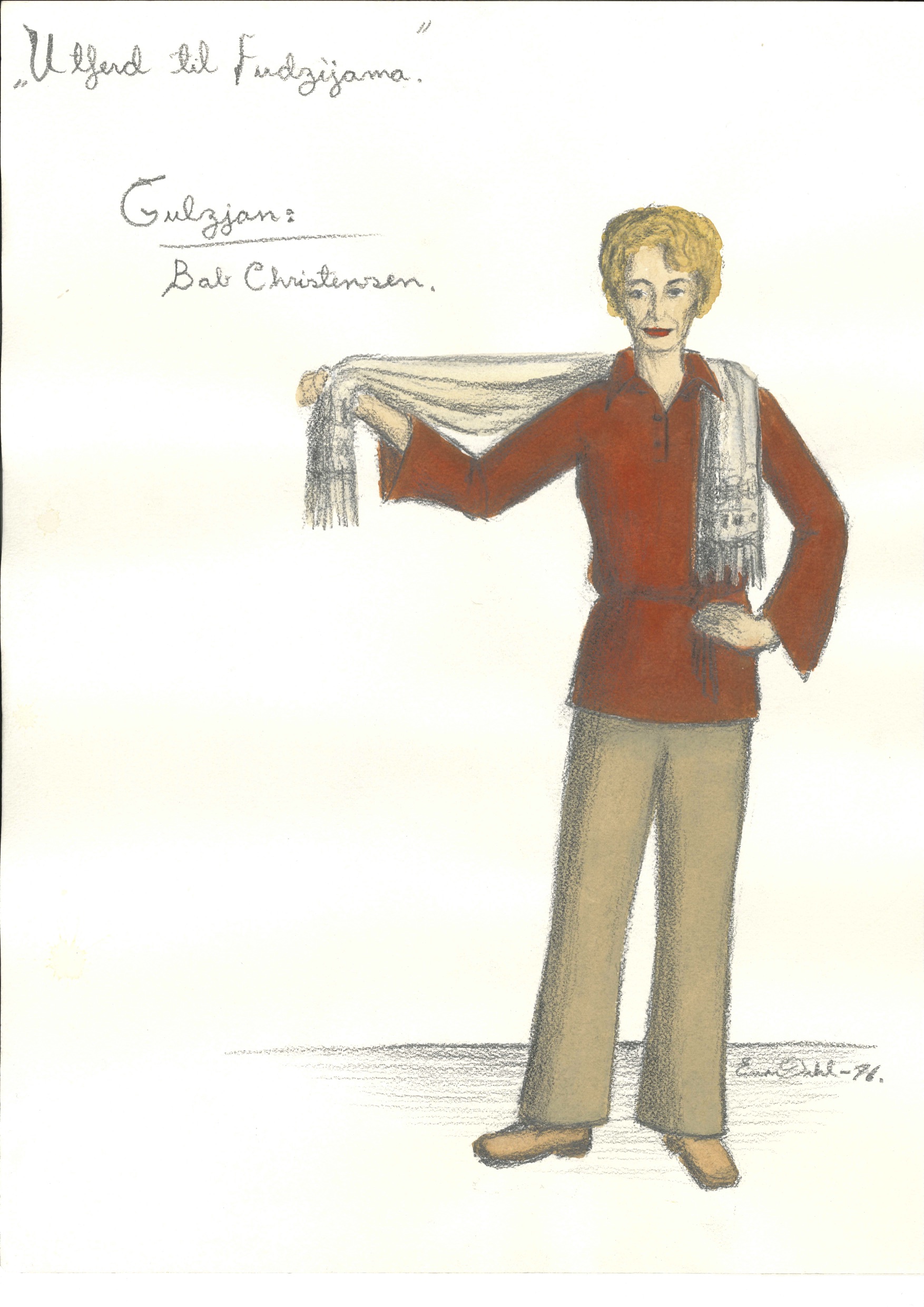 Kostymetegning av Einar Dahl fra Det Norske Teatrets produksjon Utferd til Fujiyama (1976).