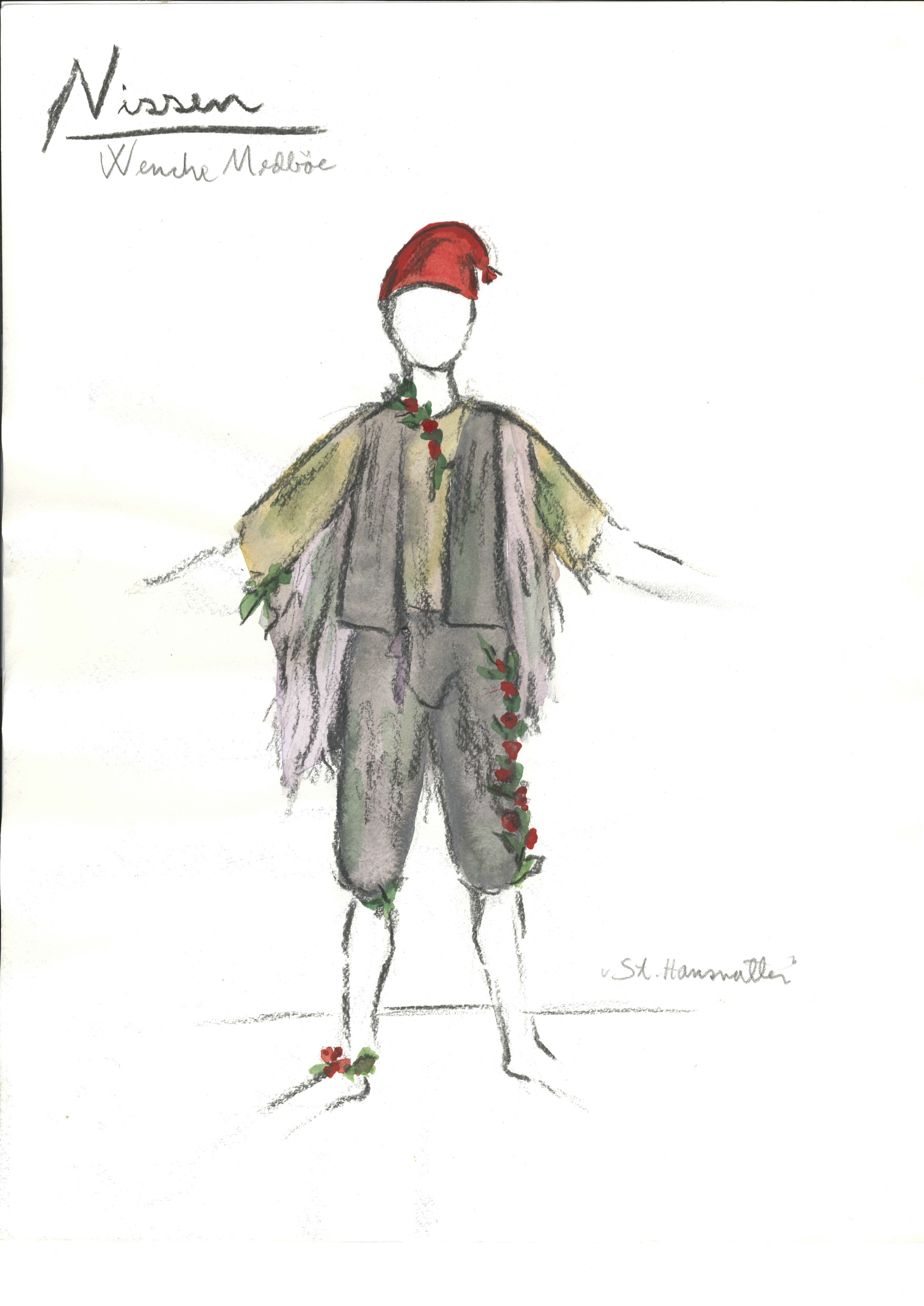 Tegningen er til skuespillerinen Wenche Medbøe i rollen som Nissen.
