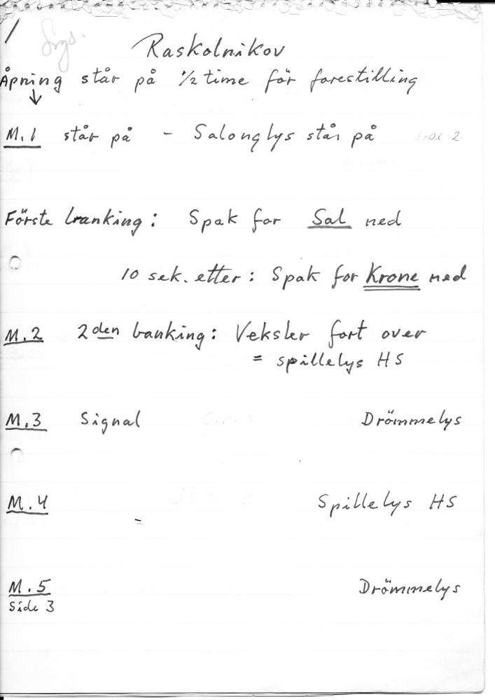 Lysplan for Nationaltheatrets produksjon Raskolnikov (1968).