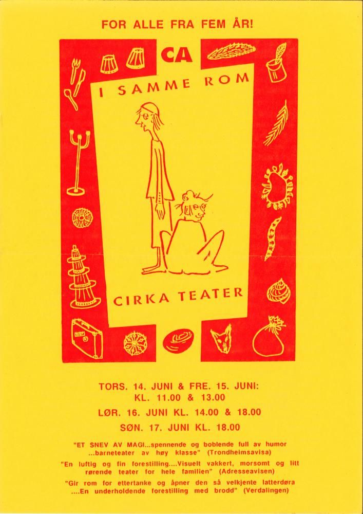 Forestillingsprogram for Cirka Teaters produksjon I samme rom (1989)