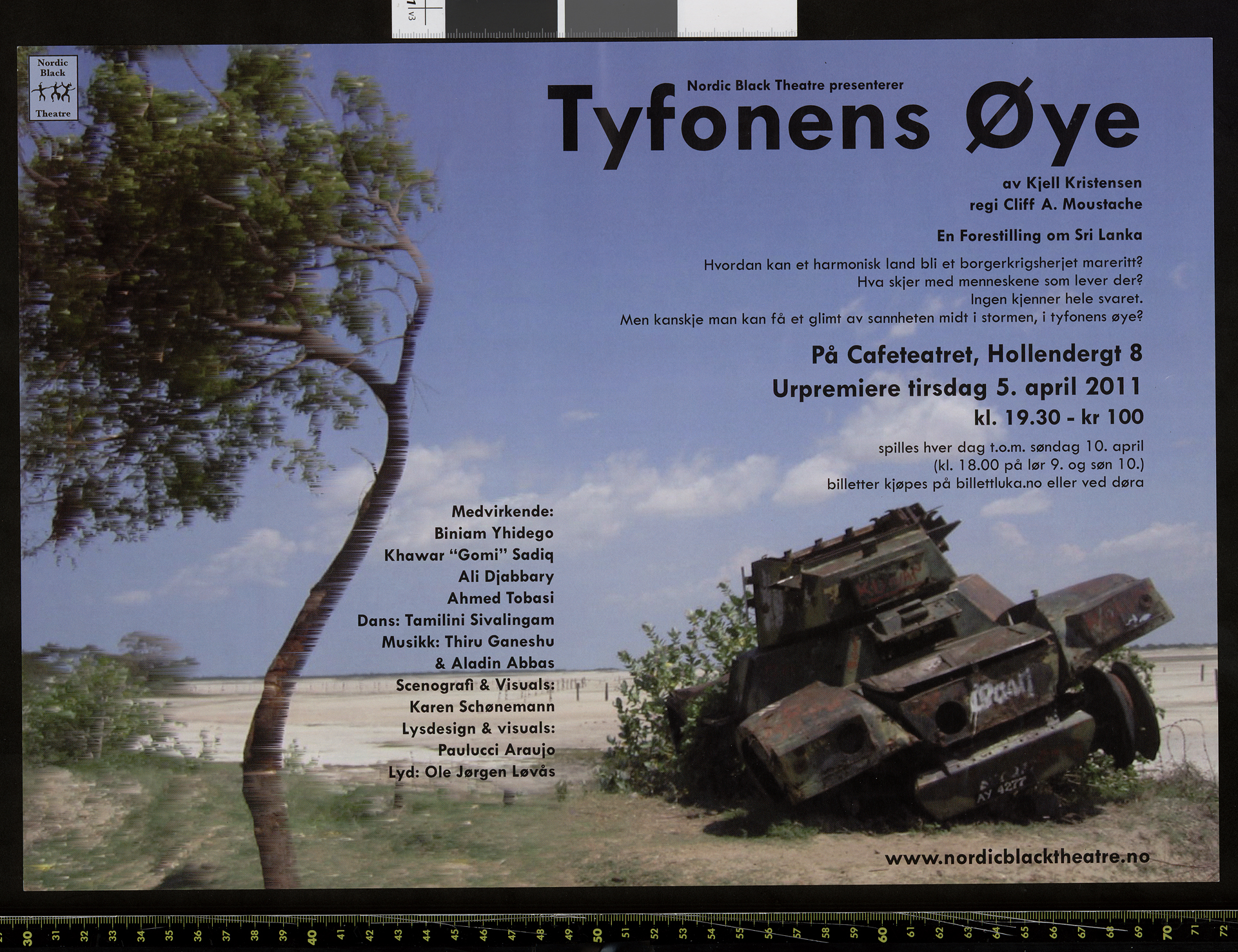 Plakat for Nordic Black Theatres produksjon Tyfonens øye (2011).