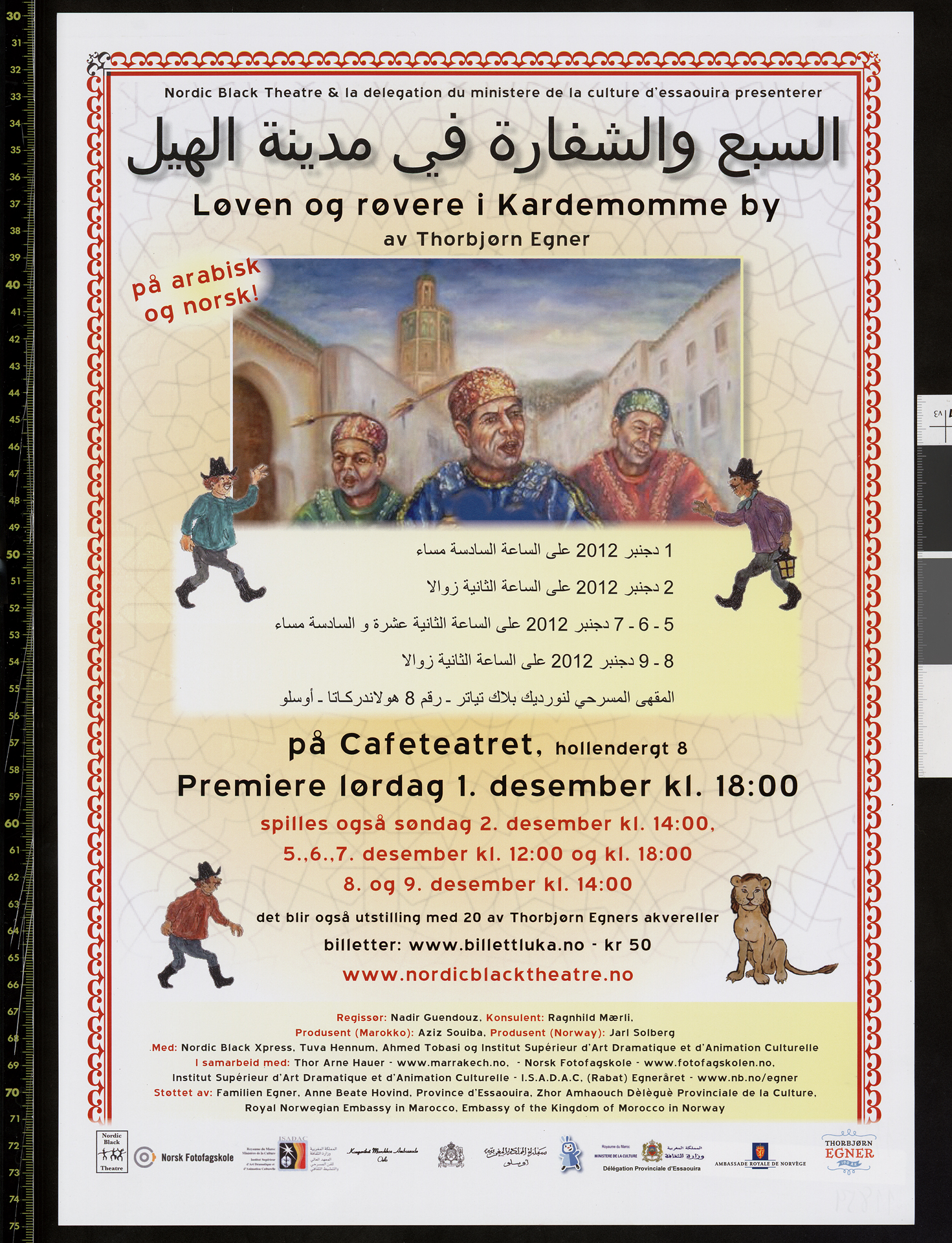 Plakat for Nordic Black Theatres produksjon Løven og røvere i Kardemomme By (2012).