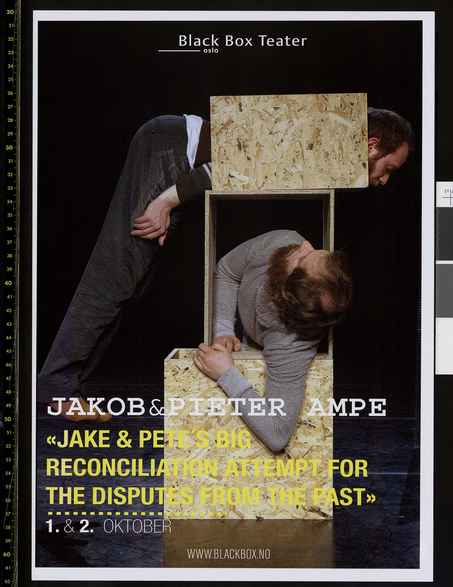 Plakat for Campos produksjon Jake & Pete's big reconciliation attempt for the disputas from the past. Plakaten er fra spillingen på Black Box Teater i i oktober 2013.
