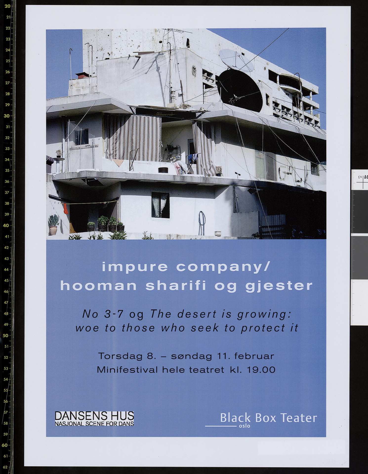 Plakat for Impure Company/Hooman Sharifis produksjon The desert is growing: woe to those who seek to protect it (2006). Plakaten er fra forestilling på Black Box teatre i 2007