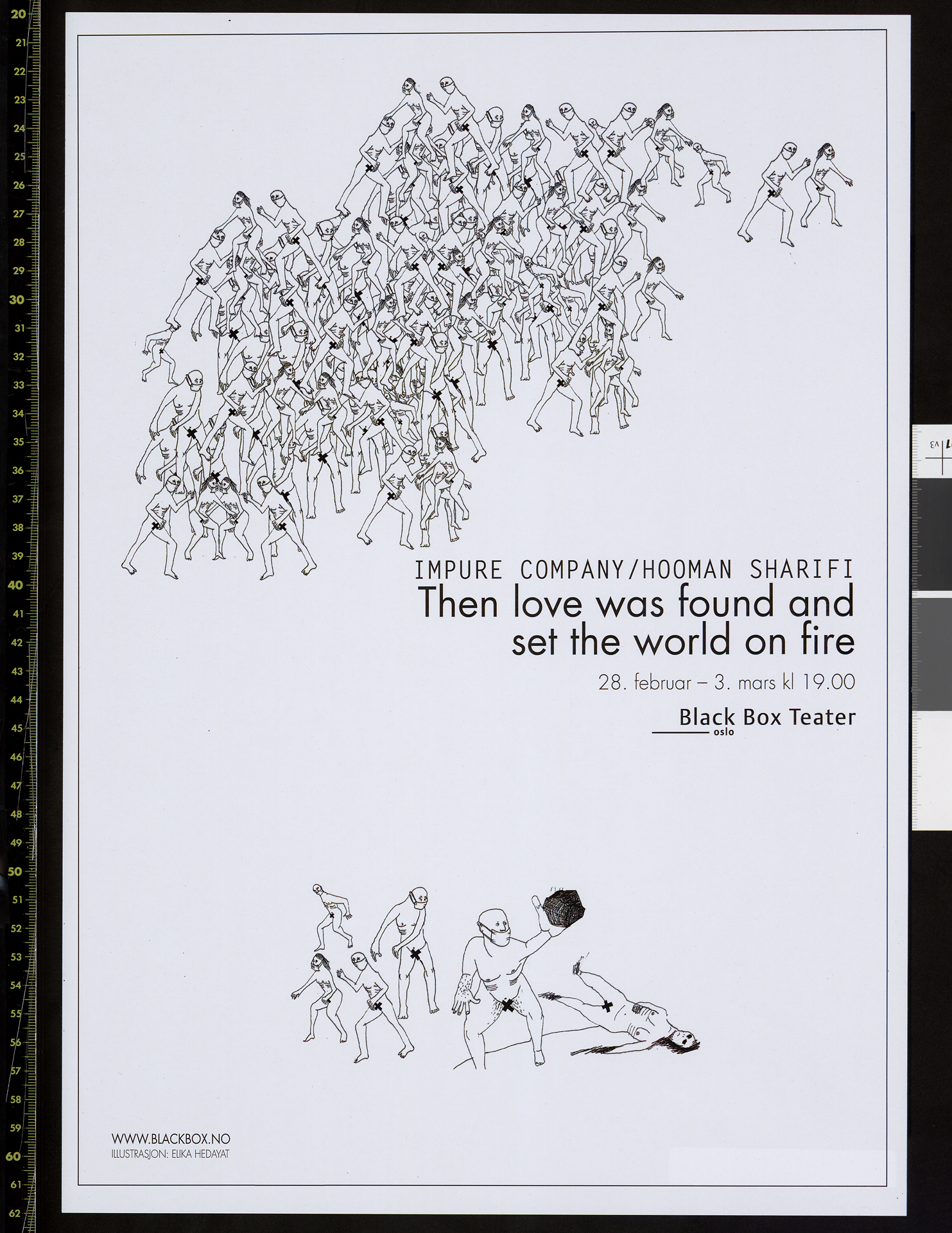 Plakat for Impure Company/Hooman Sharifis produksjon Then love was found and set the world on fire (2012). Plakaten er fra forestillingen på Black Box Teater i 2013