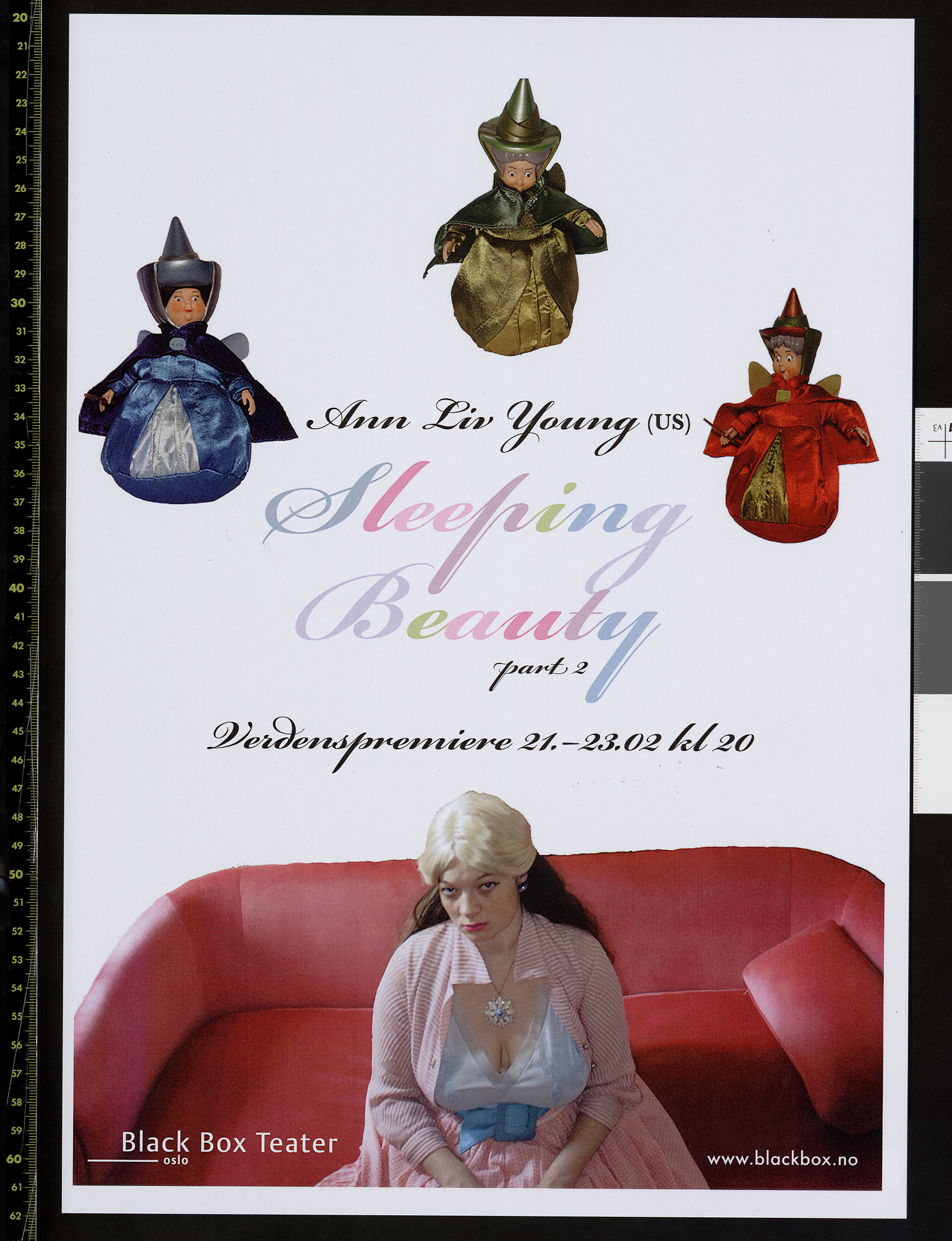Plakat for Ann Liv Youngs produksjon Sleeping Beauty part 2 (2013). Plakaten er fra forestillingen på Black Box Teater i 2013.