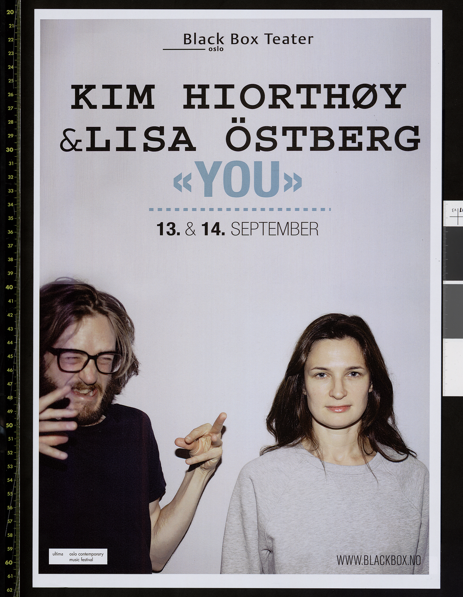 Plakat for Lisa Östberg & Kim Hiorthøys produksjon You (2013). Plakaten er fra foresillingen på Black Box Teater i 2013