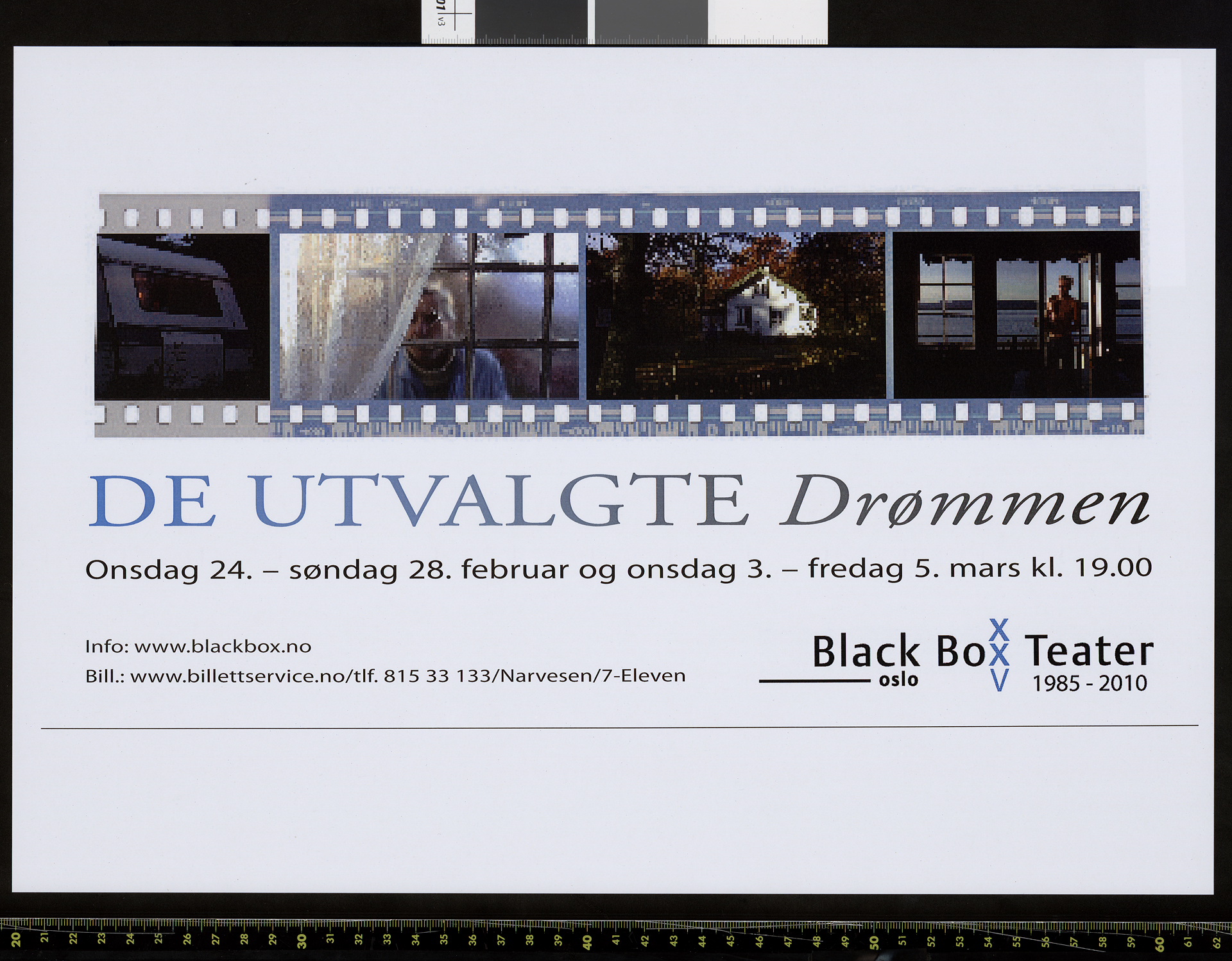 Plakat for De Utvalgtes produksjon Drømmen (2010). Plakaten er fre forestillingen på Black Box Teater i 2010.