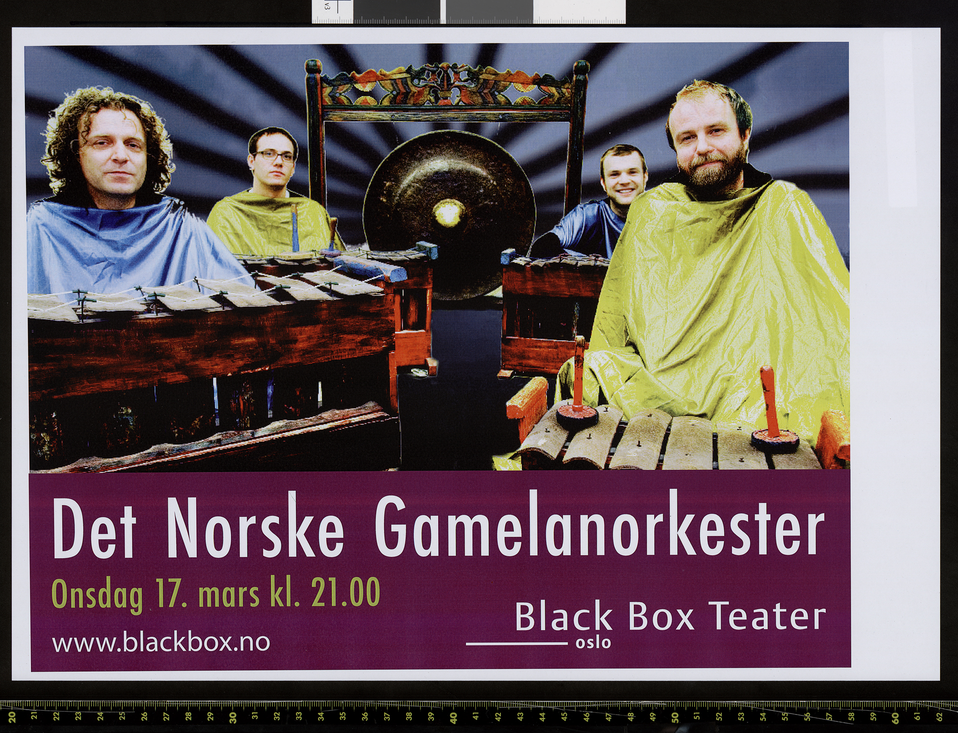 Plakat for Det Norske Gamelanorkesters produksjon Det Norske Gamelanorkester (2010) . Plakaten er fra forestillingen på Black Box Teater i 2010.