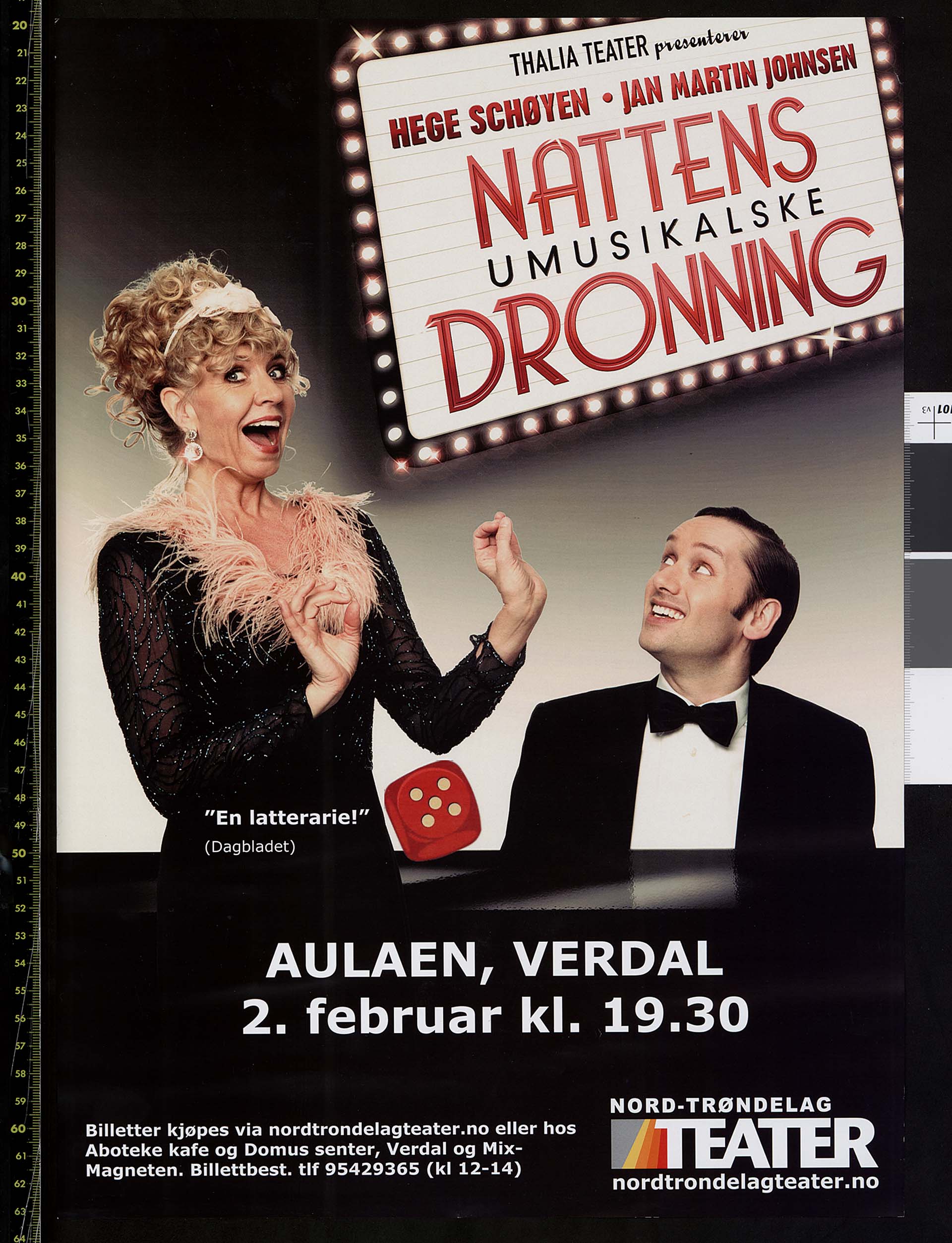Plakat for Thalia Teaters produksjon Nattens Umusikalske Dronning (2011). Pakaten er fra turnéen gjennomført i samarbeid med Nord-Trøndelag Teater i 2012.