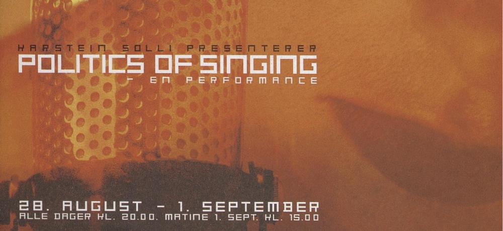 Program fra Karstein Solli Produksjoners produksjon Politics of singing (2002).