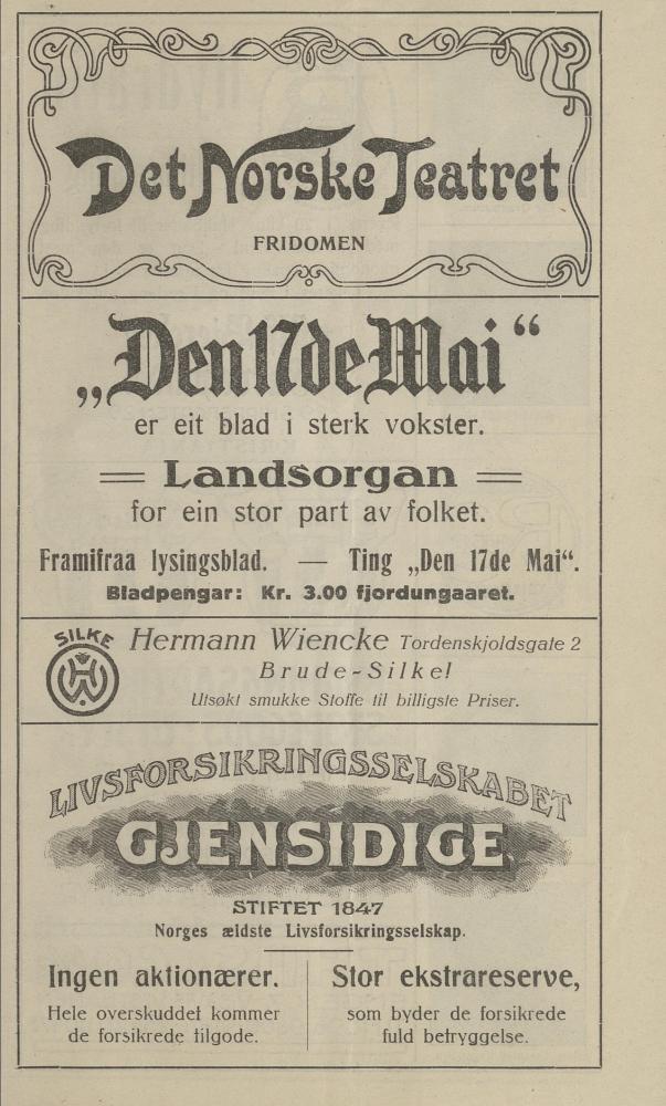 Program fra Det Norske Teatrets produksjon Fridomen (1919).